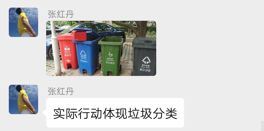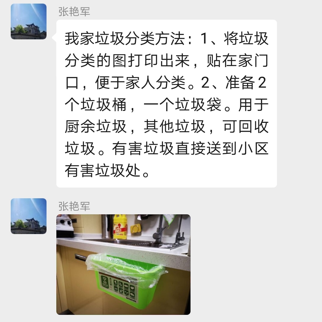 在参加垃圾分类知识测试后,各位党员在支部群中用图片或文字的形式分享了自己在家庭中落实垃圾分类的做法和经验。