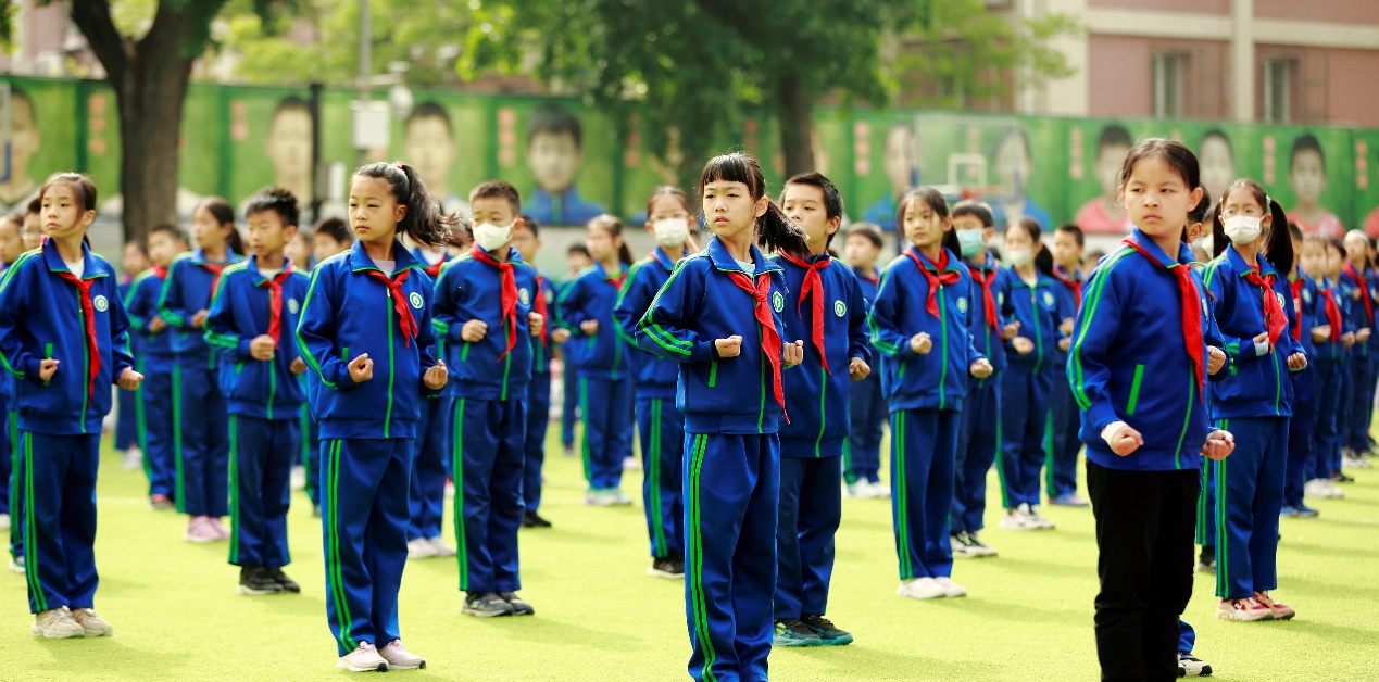 4月28日上午,运动会开幕式在田径场举行。在庄严的升旗仪式后,三至六年级学生分年级进行了武术操展演。伴随着武术操《旭日东升》的节奏,同学们队列整齐,动作规范,声音洪亮有力,展现了实验小学学生朝气蓬勃的精神面貌。