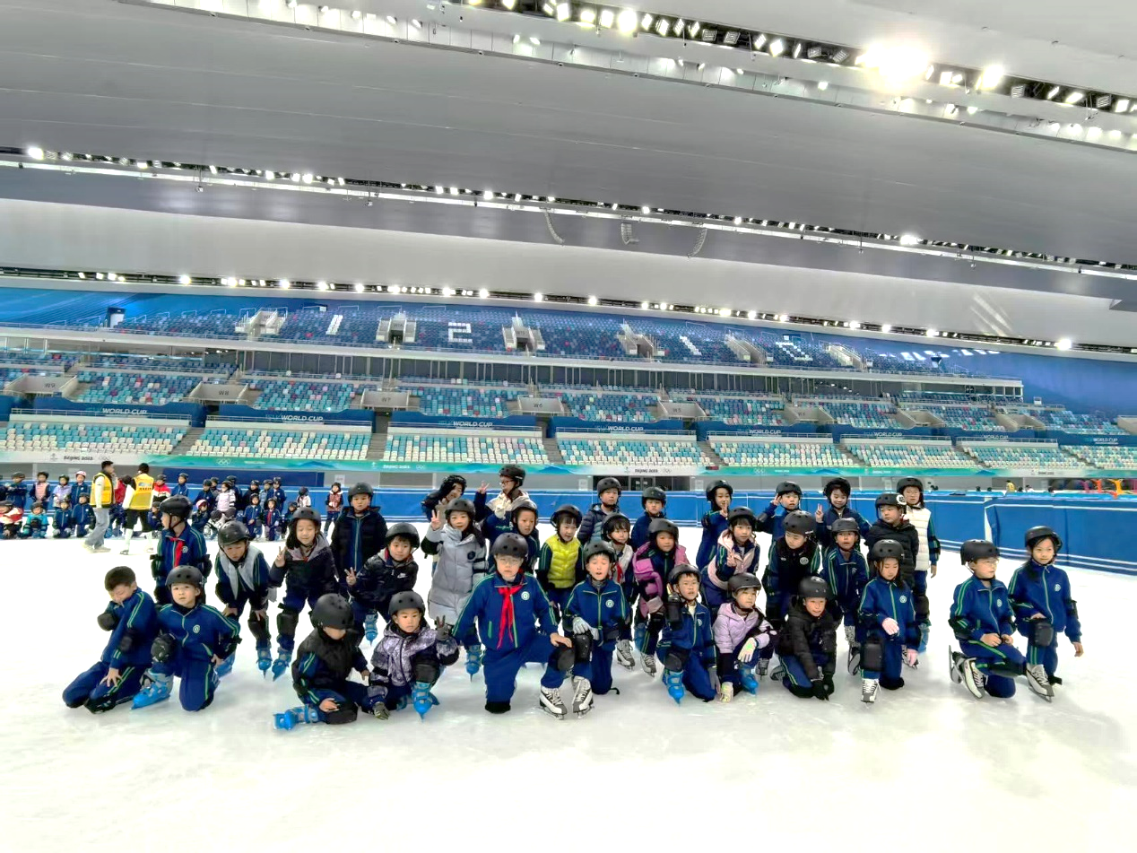 2025年12月10日,三年级全体师生走进国家速滑馆“冰丝带”,开启了一场以冰雪运动为主题的研学实践活动。本次研学将滑冰体验与场馆探秘放在上午,让同学们率先沉浸式感受冰雪魅力。