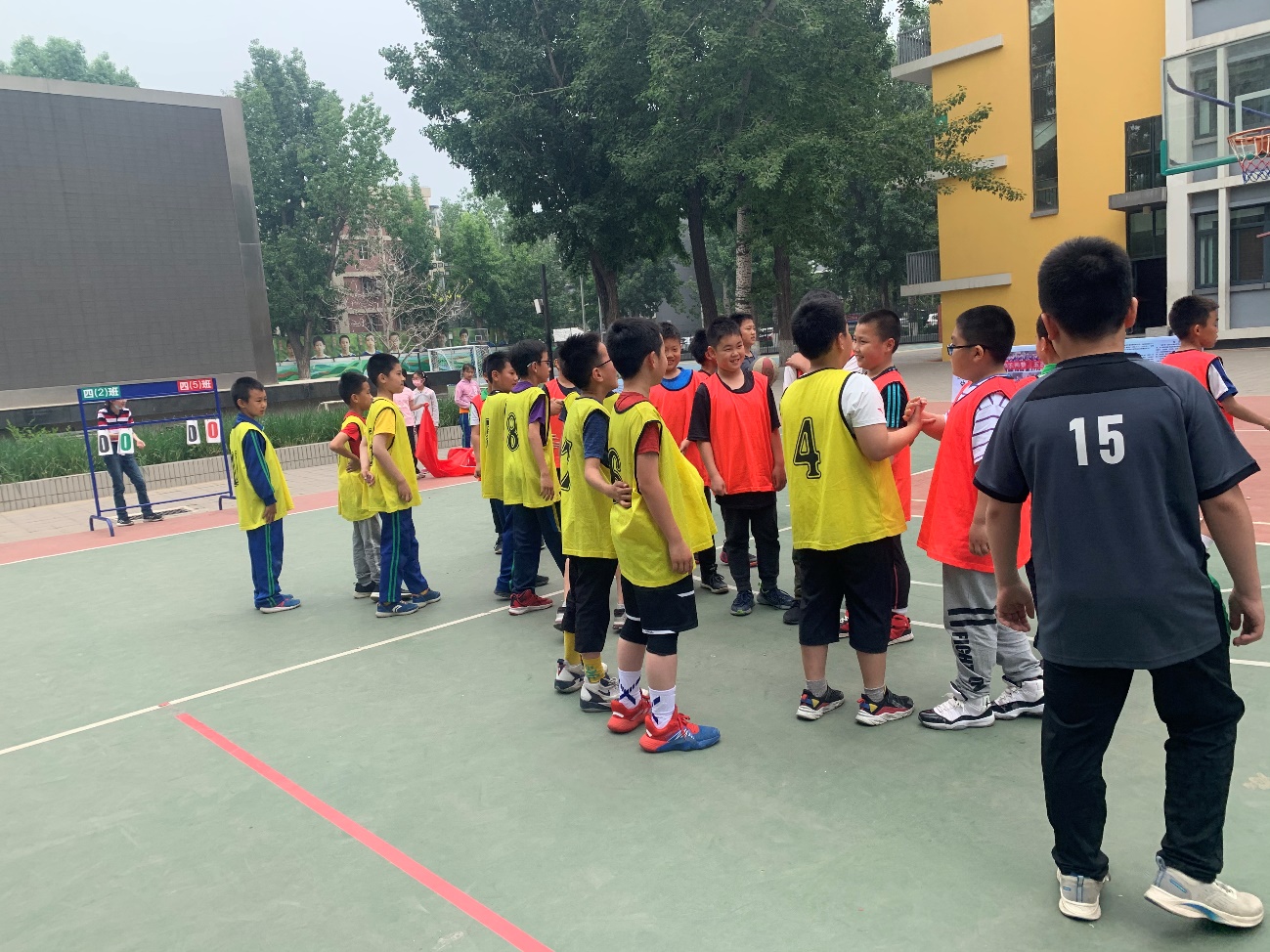 5月13日,实验小学四年级篮球比赛在小学中操场正式打响,首场比赛由四(2)班男篮对阵四(5)班男篮。