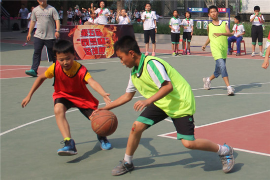 日下午,“同梦杯”篮球赛五年级的第一场比赛拉开了帷幕。五(