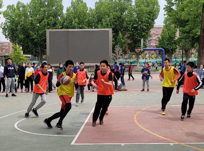 2021年4月16日星期五中午,六(1)班对阵六(4)班的男篮比赛开始了。在队员们刚刚下楼时,原本灰蒙蒙的天空拨云见日,阳光一下子温暖了篮球场,似乎也在预示着我们的胜利。不一会,裁判的哨声响起,上场队员们与4班队员握手,随后比赛按下了“开始”键。