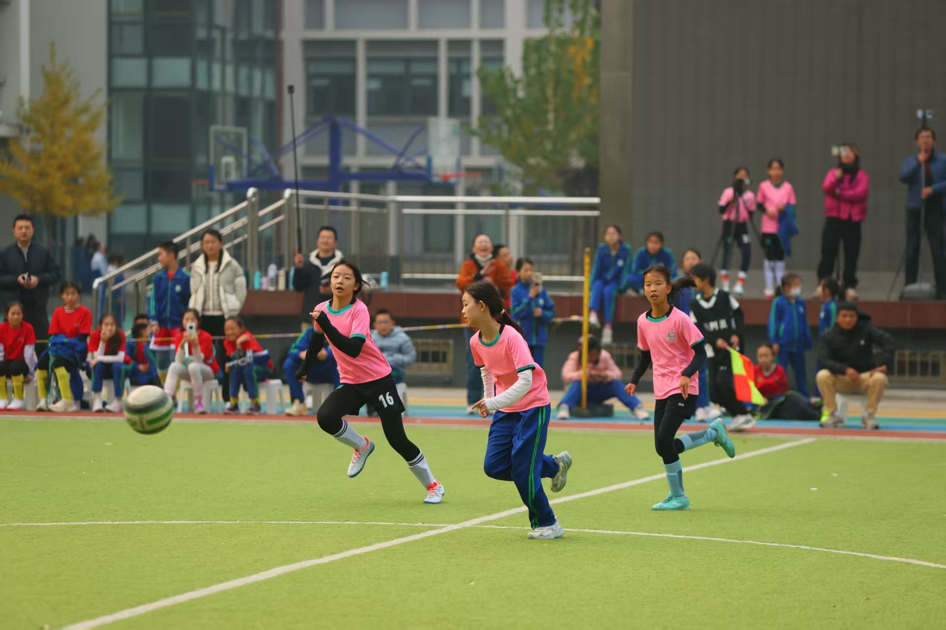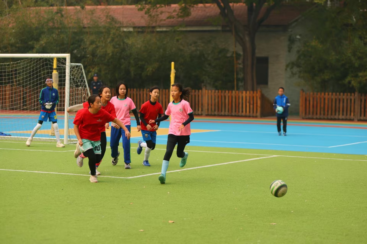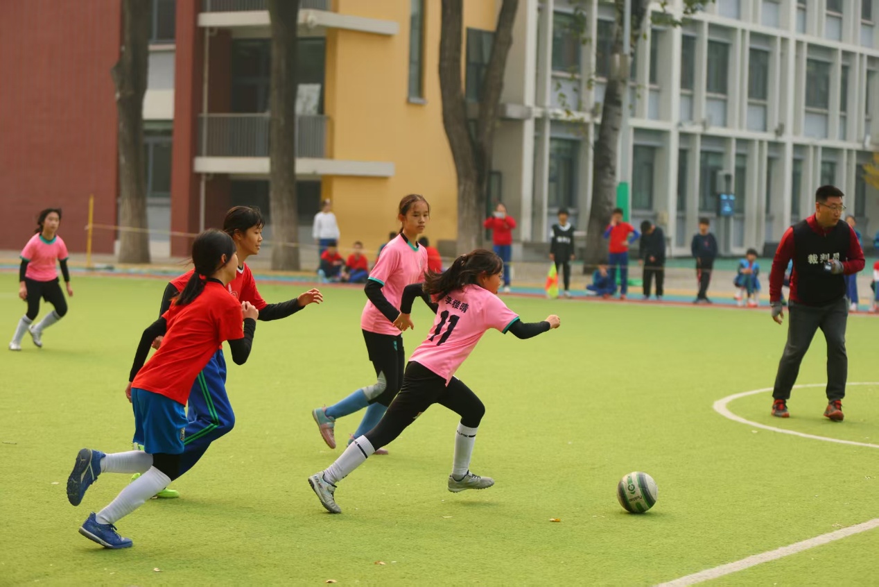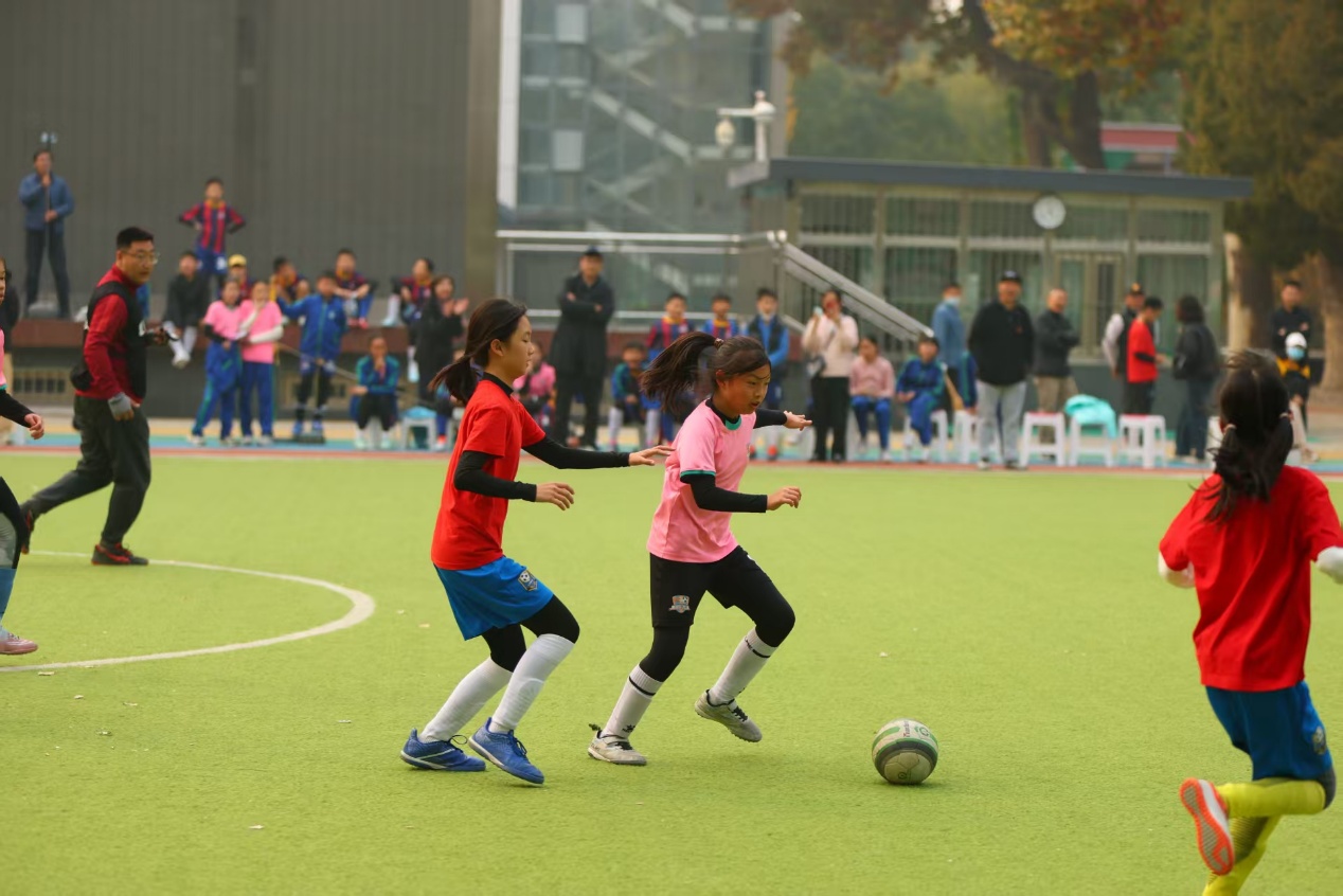 片片金黄的树叶飘落,为北京师范大学实验小学的足球场增添了几分秋天的色彩。在11月5日的午后,六2班的女生们迎来了一场激动人心的比赛——与六5班女生在绿茵场上的较量。