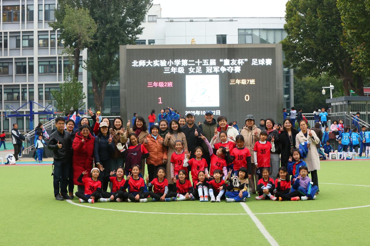 在这个充满激情与荣耀的金秋,北京师范大学实验小学第二十五届“童友杯”足球赛三年级组比赛落下帷幕。我们三2班女足全体队员不负众望,凭借顽强的意志和默契的配合,以五战全胜的不败战绩勇夺冠军,为班级赢得了沉甸甸的荣誉!