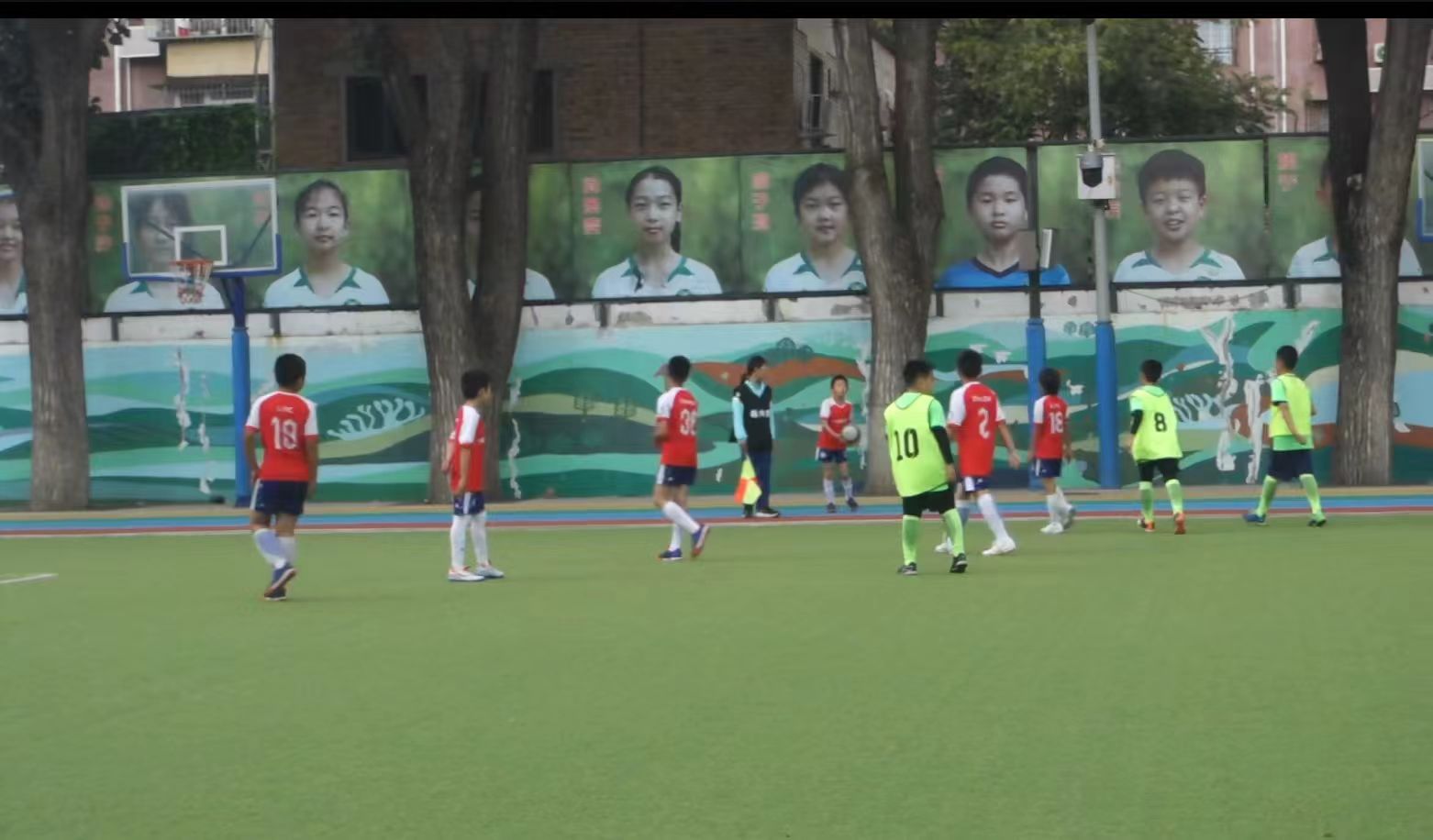 9月22日中午,激动人心的五年级男足比赛开始了,由三班对阵一班。五3班啦啦队亮出“三班三班,猛虎下山”的霸气横幅,场边更有家长志愿者化身“金牌直播团队”,确保场外家长也能“云观赛”。