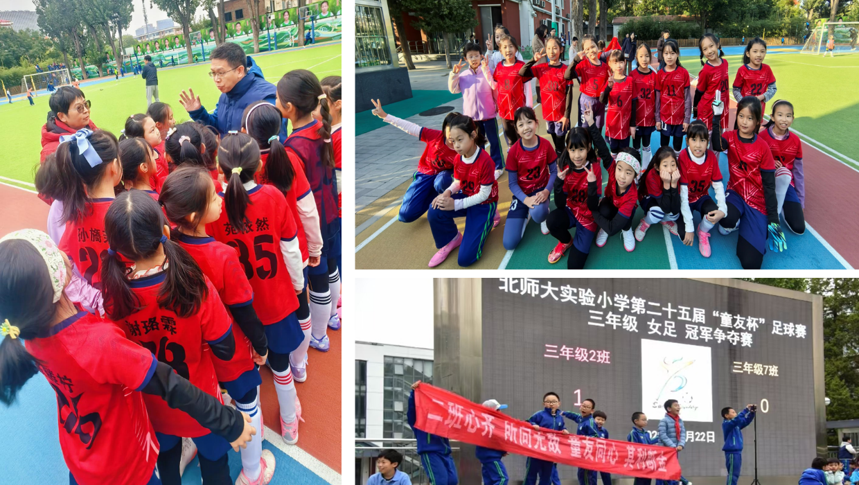 回顾这次“童友杯”的历程,2班女足用勤奋的足球基本功练习和针对性的战术理论学习,为比赛作了充足的准备。在场上,她们用奋力奔跑、坚持不懈地诠释着永不放弃的体育精神。半决赛中,有两名队员在争抢中摔倒,但迅速爬起,直到比赛结束下场后才在队友、家长们的搀扶下处理擦破的伤口。在这个异常寒冷的十月,学校绿茵场上奔跑的身影、场边此起彼伏的呐喊、队员们脸上的笑容和汗水,共同编织成了三年级最温暖的记忆!