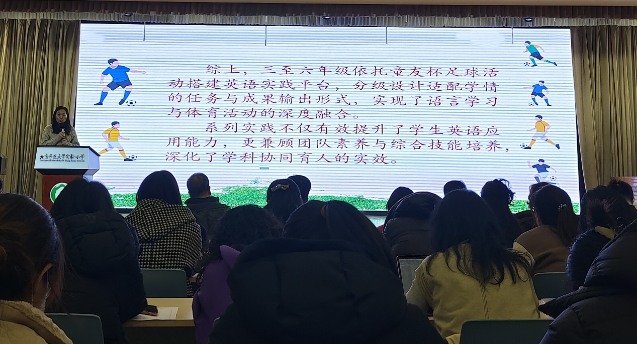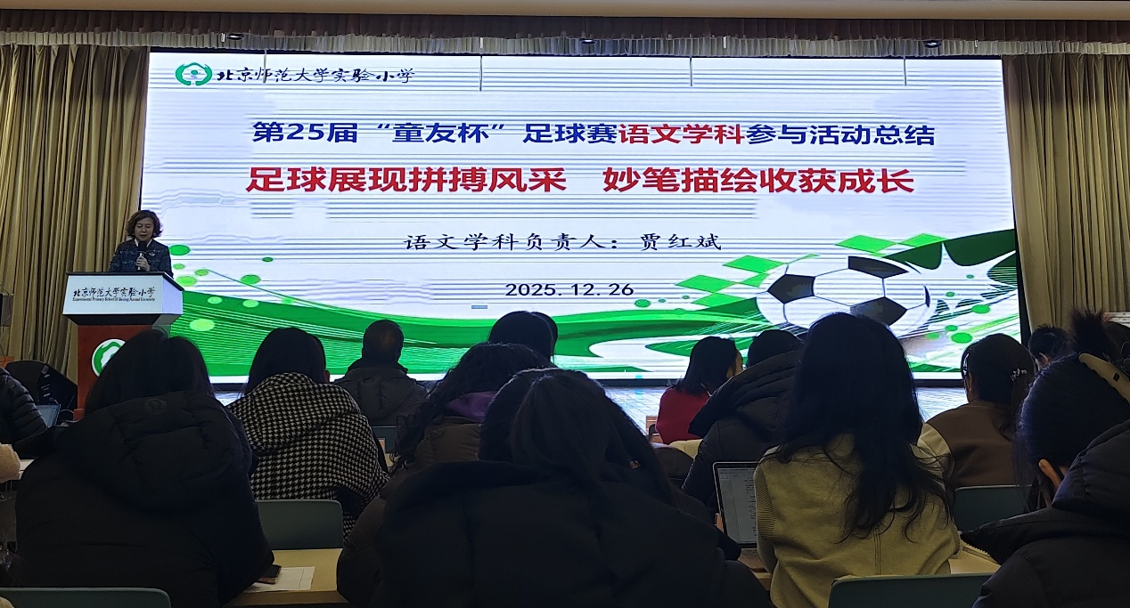为深入践行“健康第一”教育理念,精准落实教育部体育美育浸润行动计划、学生体质强健计划及北京市新时代中小学体育工作相关要求,2025年12月26日,北京师范大学实验小学第二十五届“童友杯”足球赛工作总结会隆重召开。德育副校长孙彬主持会议并介绍了本届总结会的背景与意义,全校教职员工齐聚一堂,全面复盘赛事成果,共话全学科协同育人新路径。