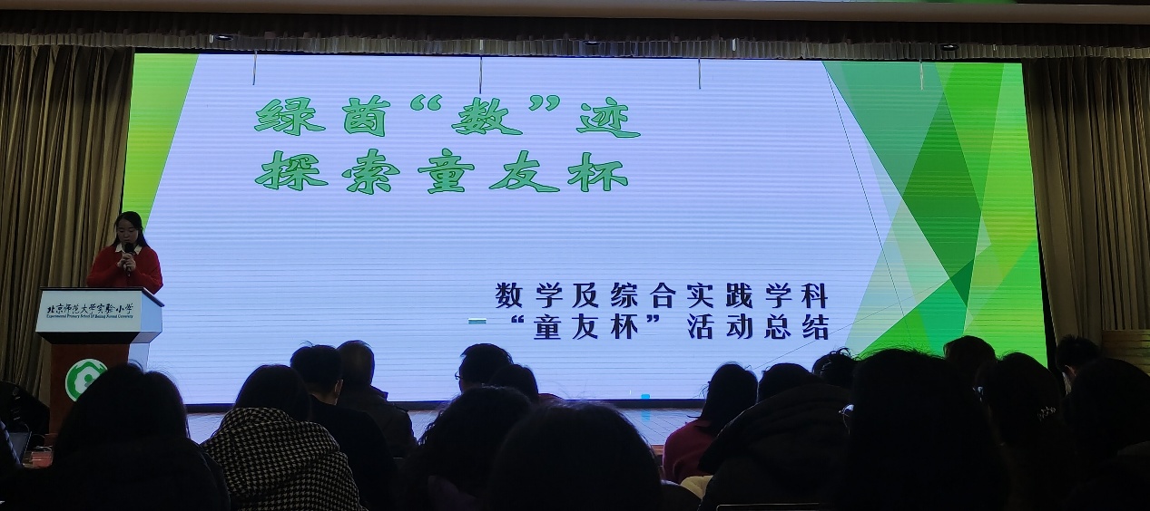 综合实践组组长李在励代表数学及综合实践组以“绿茵‘数’迹,探索‘童友杯’”为主题,呈现了跨学科学习的丰硕成果。三至六年级依据学情分层设计活动:三年级学生在赛前化身为“小小策划师”,赛中成为“数据记录员”,并且进行赛后总结,学生在这些环节中巩固和应用数学知识;四年级聚焦足球场地尺寸、净胜球计算、绘制积分表、足球形状、比赛场次等问题,激发学生对数学和体育的兴趣,感受数学的实用性和趣味性。五年级围绕班级徽标设计开展问题探究,形成“提出问题—实践探究—成果输出”的完整闭环;六年级结合毕业年级特点,理性分析新旧赛制差异,为赛事改进提出合理化建议,部分学生还延伸探究世界杯规则,深化对规则制定的理解。活动中,学生的观察能力、实践能力与创新思维得到全面提升。