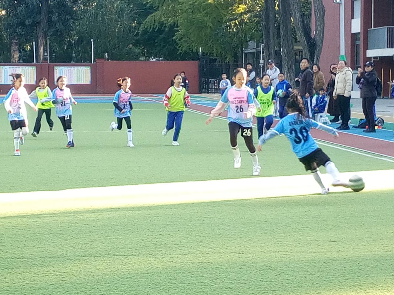 10月20日15:40,我校“童友杯”三年级组女足A组小组赛的收官之战在五班与四班之间打响。最终五班未能保持住上半场的领先优势,在下半场被四班反超,以1:2憾负。