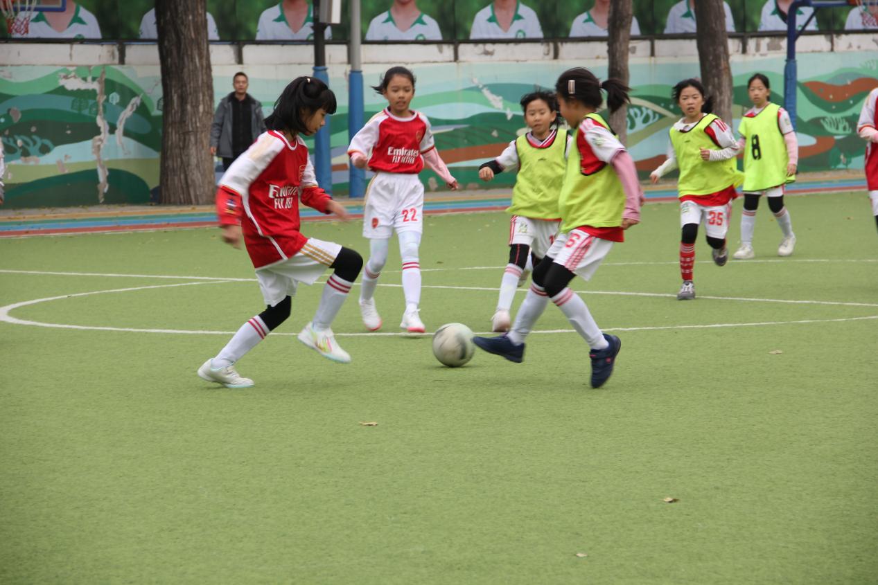 比赛一共分为 4 节,每节 10 分钟,而且规则很特别,男生踢前两节,女生踢后两节。随着裁判老师的一声哨响,男生们率先登场啦!他们一个个精神抖擞,穿着整齐的队服,在球场上跑个不停。前两节比赛特别激烈,好几次都出现了门前混战的情况,球在球门附近来回传递,看得我们观众心里都跟着紧张,大声喊着 “加油!加油!” 可不管是四1的男生,还是四6班的男生,都没能把球踢进对方球门,第一节结束时,比分还是 0:0。