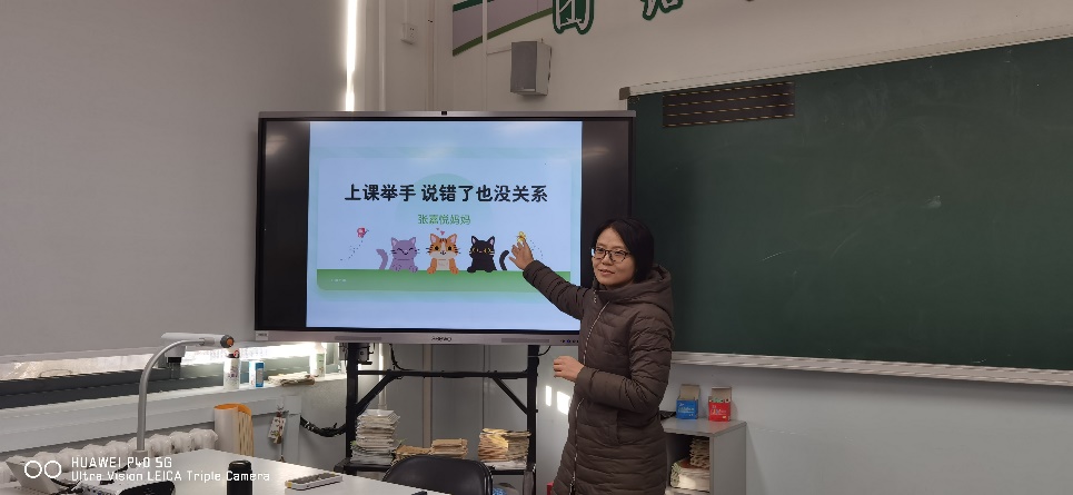 为了打破这份举手焦虑,11月17日上午,我们二4班邀请张嘉悦同学的妈妈给大家带来了主题为《上课举手说错了也没关系》的沙龙活动。嘉悦妈妈以贴近同学们课堂生活的实例引入,引导同学们思考,自己是否也有同样的烦恼呢?别担心,你不是一个人,让我们一起来解锁“不怕说错”的勇气密码。