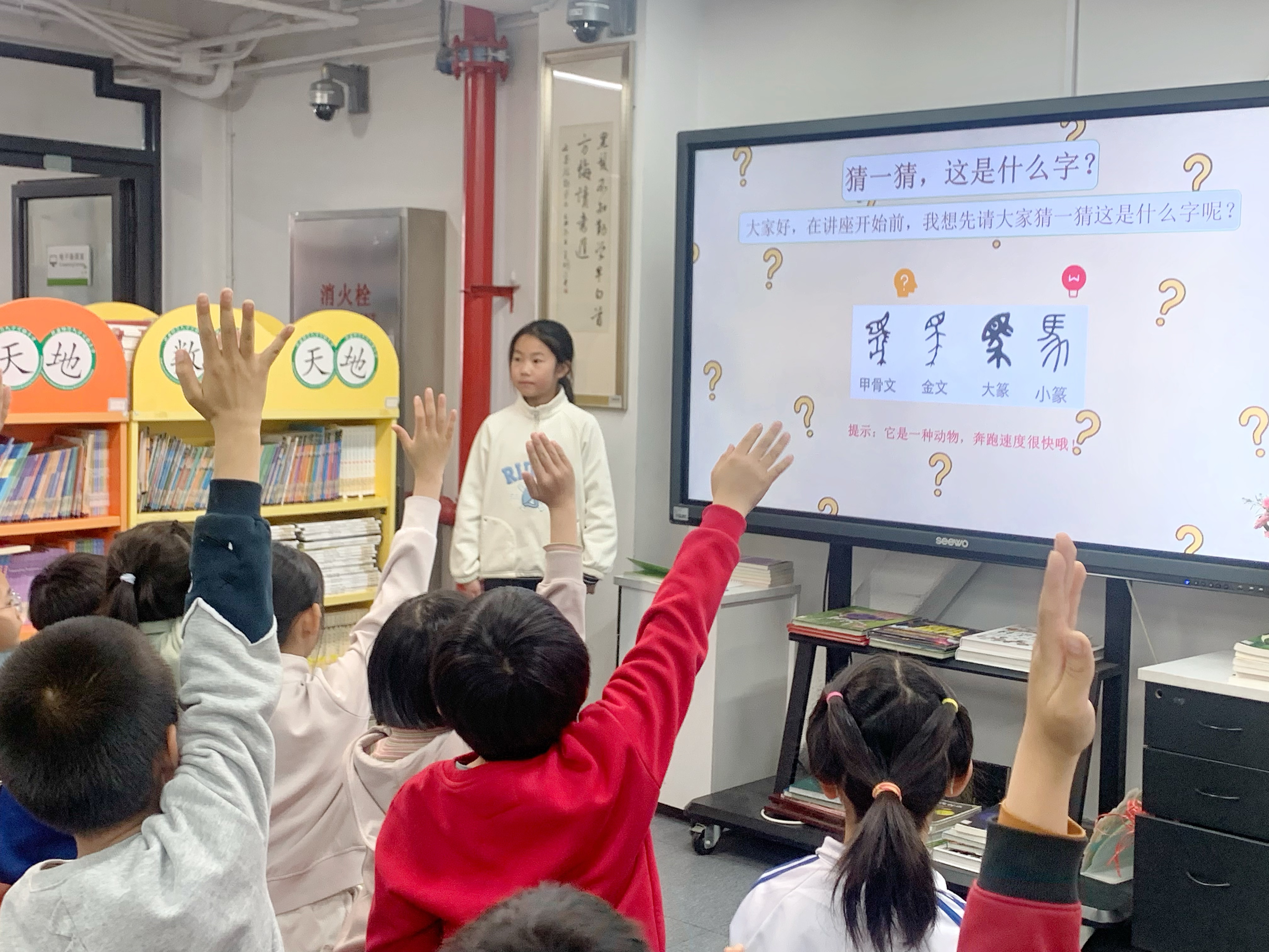图书馆的周老师鼓励三年级同学多读书,多思考,多分享,在书香中滋养心灵。她特别提到,汉字不仅是交流工具,更是中华文明的基因密码,期待孩子们在阅读中读懂文字背后的历史与情感。