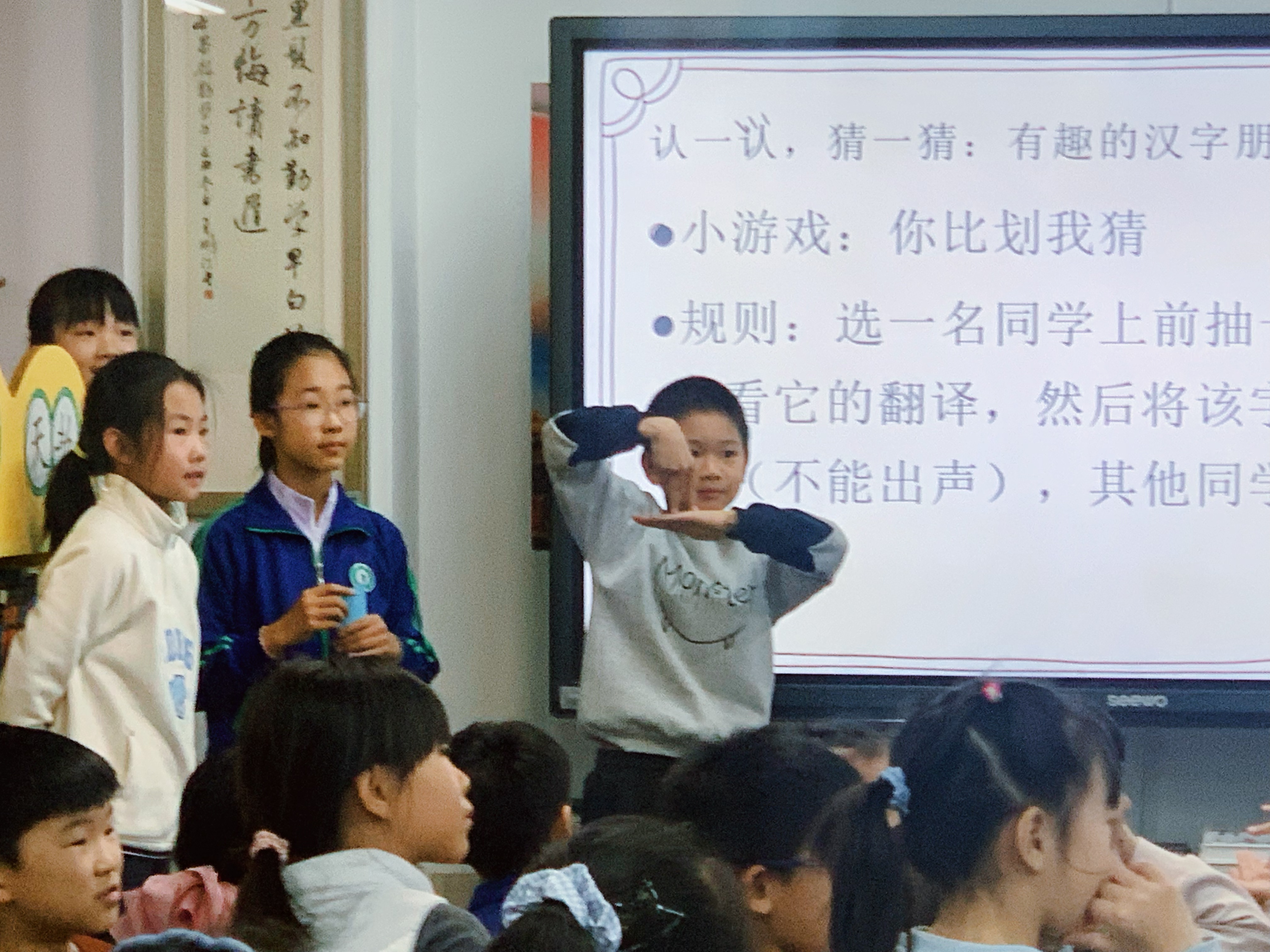 此次分享不仅让三年级的小同学们领略了汉字的博大精深,更展现了五年级学子的文化素养表达风采。活动尾声,三年级同学还为学姐们提出了宝贵建议,阅读展示环节的设置也让更多同学感受到了阅读的乐趣。