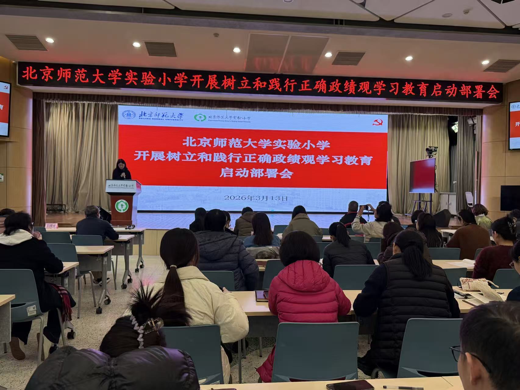 为贯彻落实北师大党委统一部署,扎实推进树立和践行正确政绩观学习教育走深走实,2026年3月13日下午,北师大实验小学党总支召开学习教育启动部署会,党总支书记李荔萍主持并做动员讲话,学校党政班子、在职教师两个支部全体党员参加会议。