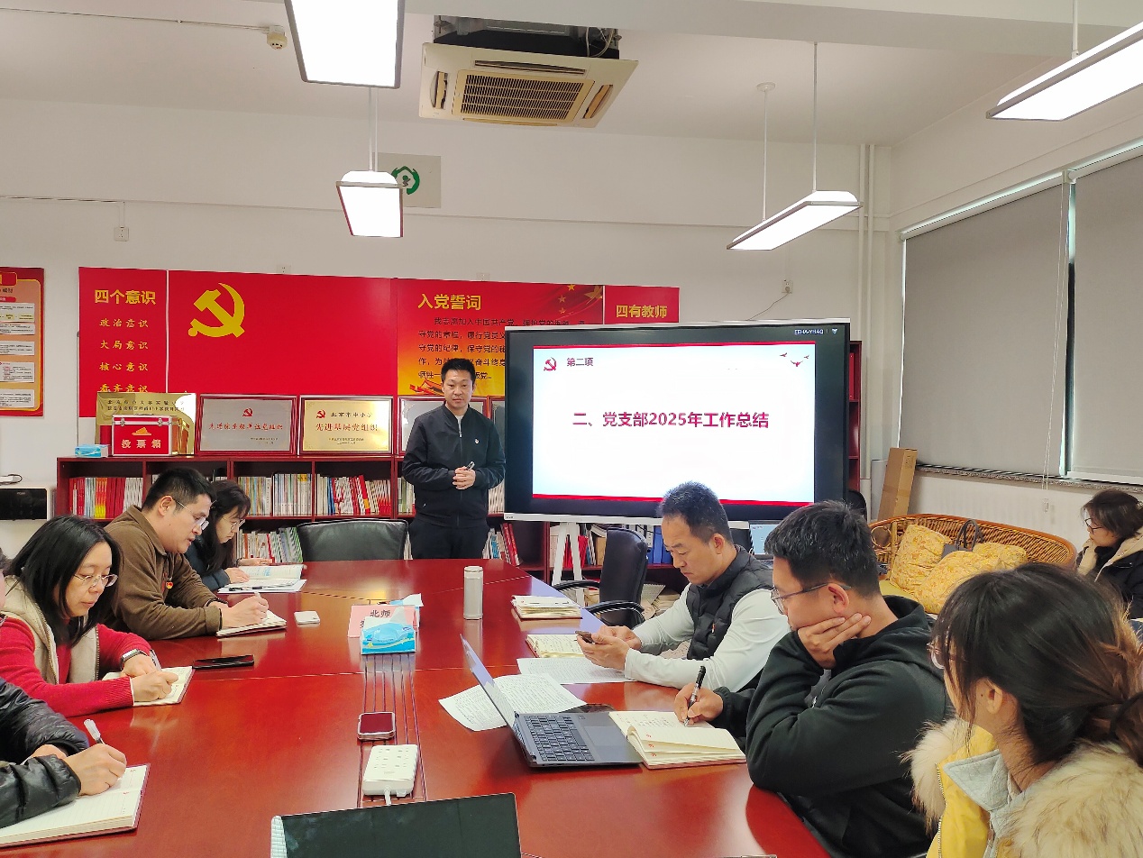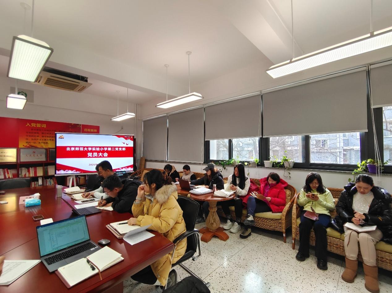 2026年1月19日,北京师范大学实验小学第二党支部召开2026年第一次党员大会,会议由党支部组织委员尹俊尚主持,会议有集体学习、2025年度党支部工作总结、征集对党支部2025年工作建议三项事项。党员大会结束后,党支部以党小组为单位召开组织生活会,党员开展批评与自我批评。