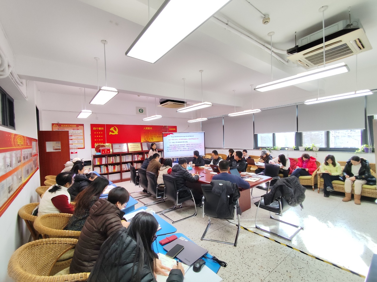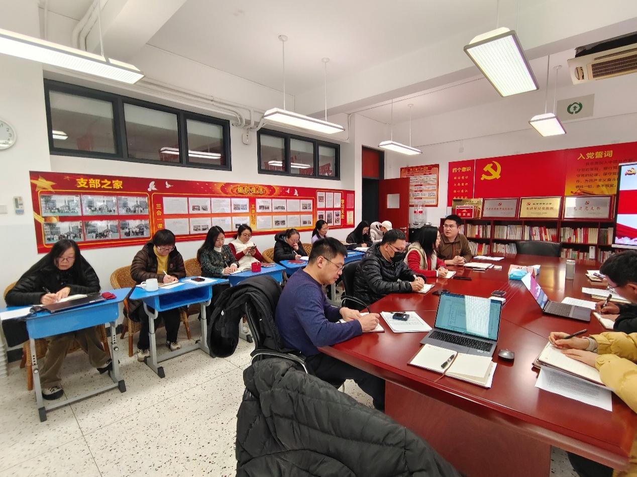 党员大会第二项内容是党支部书记孙彬对党支部2025年工作进行总结,2025年第二党支部认真落实“三会一课”制度,重视党支部自身建设,认真落实党员教育方案,以中央八项规定精神学习为重点,开展主题教育;继续开展“坚守初心担使命,我为师生办实事”活动,将失物招领工作纳入党员支部志愿服务常规工作,支部所有党员全部参加了志愿服务。同时,党支部创新党建形式,参加了党总支组织的以“红色铸魂践初心,党建引领育新人”为主题的学习活动,组织全体党员赴浙江嘉兴、上海开展学习交流活动。此次活动坚持政治引领、实践导向和融合创新,探索形成了一系列具有支部特色的党建工作做法。党支部重视党建与业务发展相融合,努力将优秀党员发展成业务骨干,党支部有14名教师获评市区级骨干教师,占支部总人数的54%,同时也努力吸引业务骨干向党组织靠拢。接着,孙彬介绍了2024年度支委会整改清单落实情况,2024年党员们提出的问题都已完成整改。