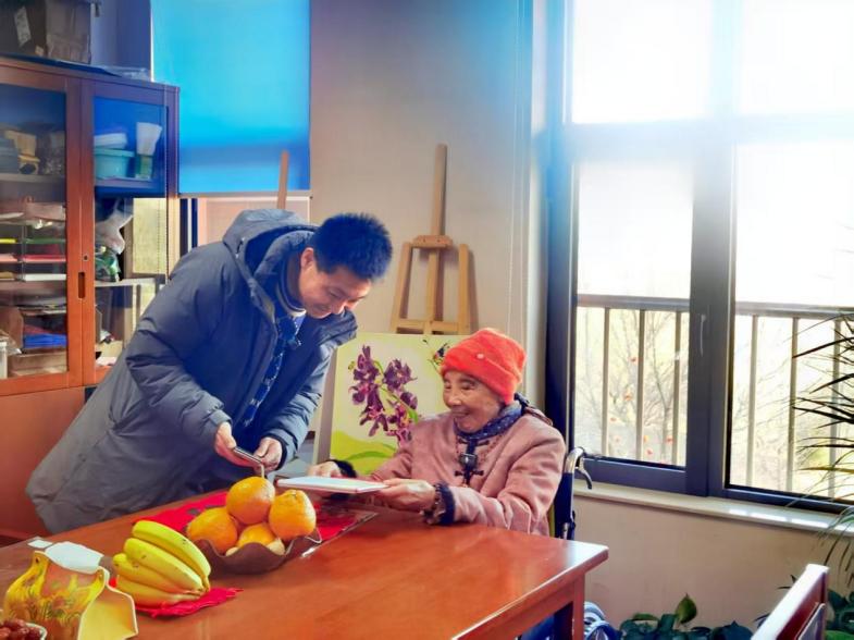 随后,慰问组奔赴河北廊坊的养老院,看望彭志蕴老师。吴校长一行与彭老师促膝长谈,关切询问其生活起居,送上节日礼物,并转达全校师生的挂念。彭老师心系教育,分享了育人感悟,还为学校发展建言献策。吴校长细心叮嘱彭老师保重身体,坚持锻炼、陶冶情操。此次探望,不仅送去了物质关怀,更坚实了连接学校与退休教师的情感纽带。