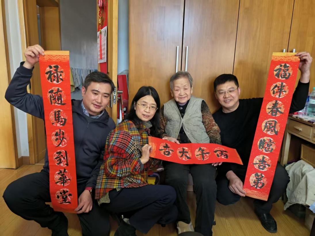 此次活动精心筹备,慰问品既包含米、面、油等实用物资,也有学校书法教师亲笔书写的春联、“福”字,以及学生们手工制作的创意台历,礼轻情意重,满载着全校师生的感恩与祝福。各小组在走访中注重人文关怀,耐心倾听老教师们的心声,细致介绍学校新发展,场面温馨感人。