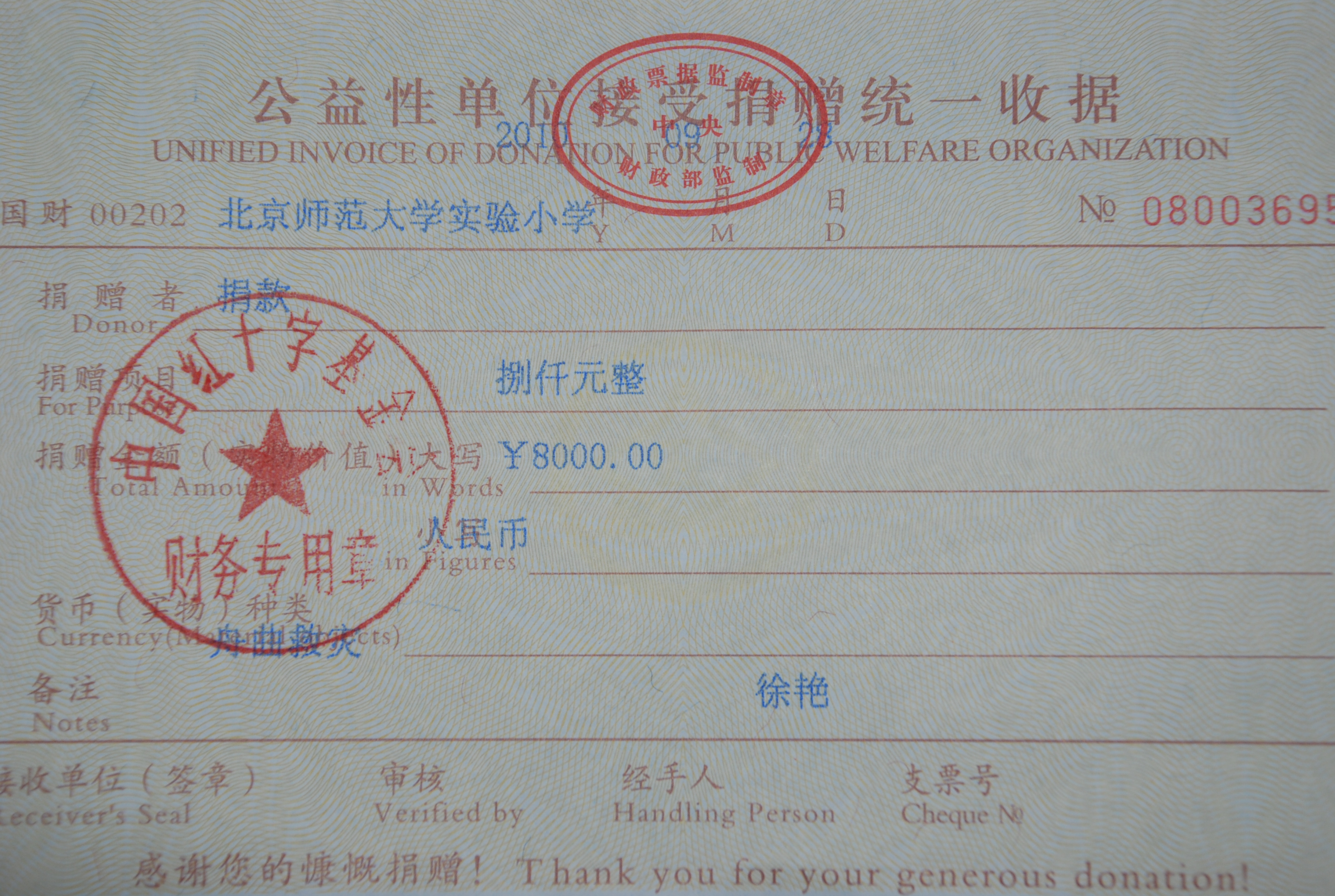实验小学教工为甘肃舟曲泥石流救灾捐款