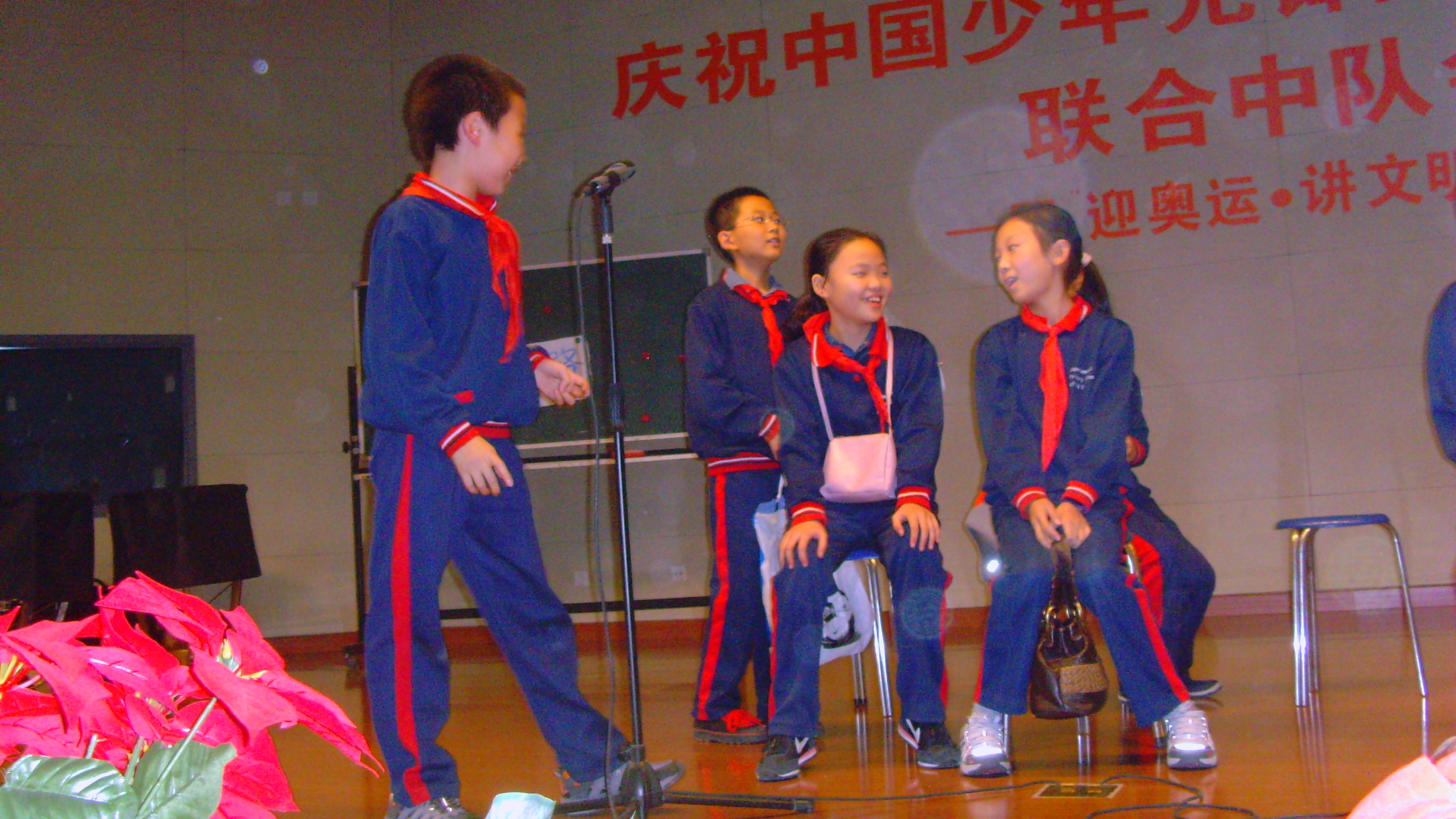 10月11日,五年级全体少先队员在学校报告厅召开了“校园奥运你和我”联合主题队会。会上,同学们通过表演奥运短剧的形式,不仅了解了许多奥运会的相关知识,同时展示了作为首都少先队员的文明风采。大家相约:2008年奥运会到来的时候,以展示文明、传递文明的小使者身份出现在世界人民面前。