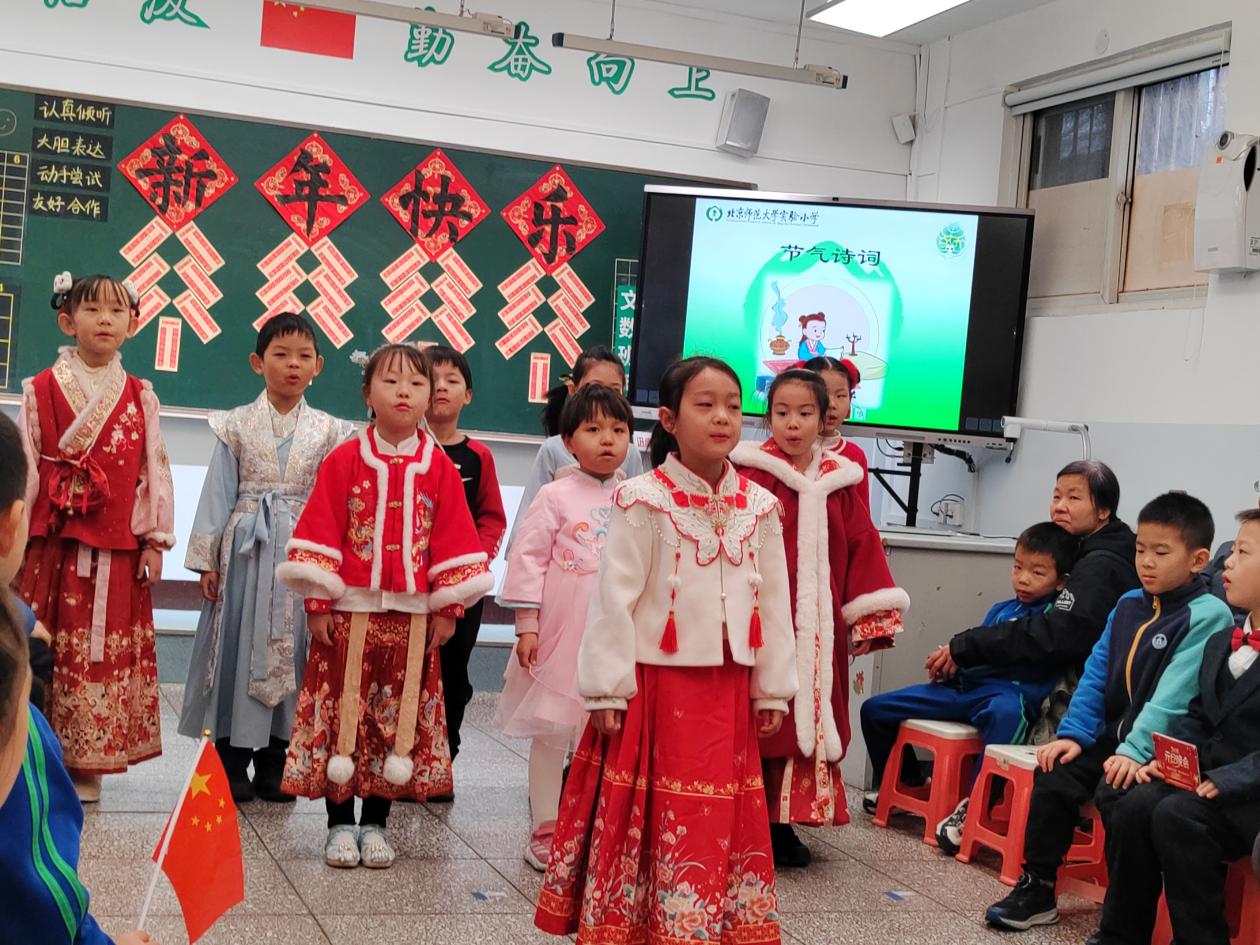 岁末相聚,文化润心。为庆祝一年级新生入学百日,见证孩子们从“新同学”到“校园小主人”的点滴成长,北京师范大学实验小学于12月31日组织开展“萌童百日初成长,古韵游园乐传承”主题活动。百日时光里,课堂上的一字一句、教室里的一次次练习、队列里的每一个站位,都凝结着老师们日复一日的耐心陪伴与细致引导。为了让孩子们拥有一场有温度、有记忆点的百日庆典,一年级教师提前策划、周密组织,从流程衔接到分组引导、从场地布置到安全保障,处处精心,力求把“成长的纪念”做成孩子们能参与、能体验、能带回家的真实幸福。今天的庆典,既有室内各学科的精彩展示,也有室外传统文化游戏的趣味体验,这正是孩子们百日成长的一次集中亮相,也是学校“乐学、会学”理念的生动实践。