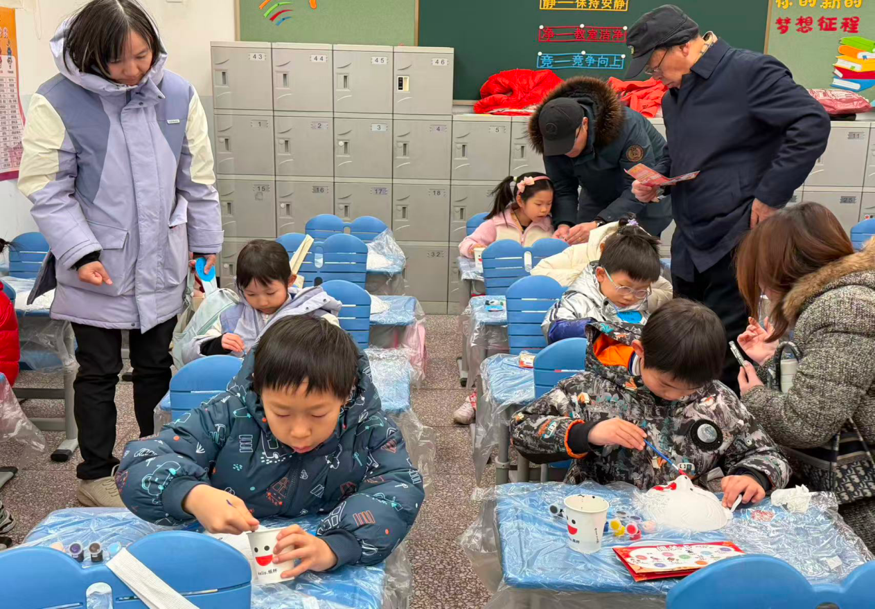 完成户外体验后,学生轮转进入室内非遗手工制作区,在老师与家长的陪伴下静心创作。孩子们挥毫写“福”,在一笔一画中体会祝愿与期盼;制作灯笼,感知团圆与光明的象征;绘制戏曲脸谱,初识戏曲艺术的角色类型与审美特征。当作品完成、笑容绽放,孩子们也在“看文化”到“做文化”的转变中,收获了更踏实的自信与更鲜明的文化体验。