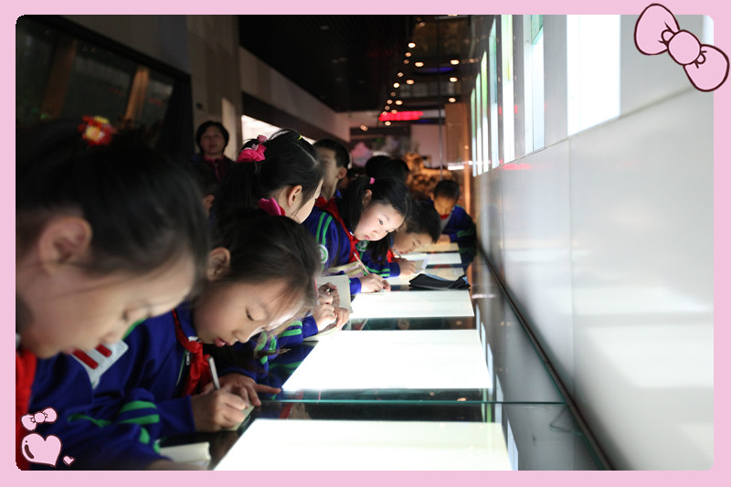 每进入一个展厅,同学们都兴奋不已,在认真观看的同时还不忘做笔记、拍照,手举相机,快速记录,俨然一个个小记者的形象。