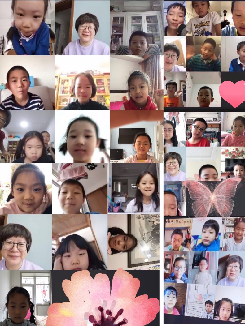 姜老师跟同学们互相问候,请大家说说这个特殊的假期里,所经历的令人感动的事。张以恒首先发言,他说到小区的快递近期都只能放在小区大门外,需要自己去取,有些叔叔阿姨取的时候就把同一栋楼的快递一并取回来放在一楼,这样很多老年人就不用跑路了,这件事很令人感动。许轩正说,我们小区的服务人员对返京人员登记信息、为居民发放出入证,他们为了大家很辛苦。姜老师说,你们可以想想冒着风险去武汉修建雷神山、火神山医院的建设者,还有所有的医护人员,他们的行为是多么勇敢,多么令人感动。姜老师请同学们说说假期都做了什么有意义的事,同学们争相发言:马维淇说学会了包馄饨、组装创意乐高、每天坚持跑步锻炼身体;罗伯峻说学会了熬粥、蒸米饭、打鸡蛋、整理沙发,每天坚持读书;高与畅说自己的生活很规律,练字、口算、摆餐桌、摆凳子,还会铺床、哄弟弟睡觉、给弟弟喂饭,最大的收获是可以长时间和家人待在一起;张惟远不仅帮妈妈摘菜、剥豆子,还每天坚持背一首古诗,108首古诗里带“春”字的全都会背了;刘若泽每天坚持写日记,跟妈妈、姐姐一起做蛋糕,每天锻炼身体;刘泽乾学会了做家务、照顾植物、取快递、取外卖;许轩正做了很多家务,拖地、整理沙发等等;张以恒说在家浇花、叠衣服、整理物品、练架子鼓,还坚持锻炼身体,每天到户外跳绳一千个。