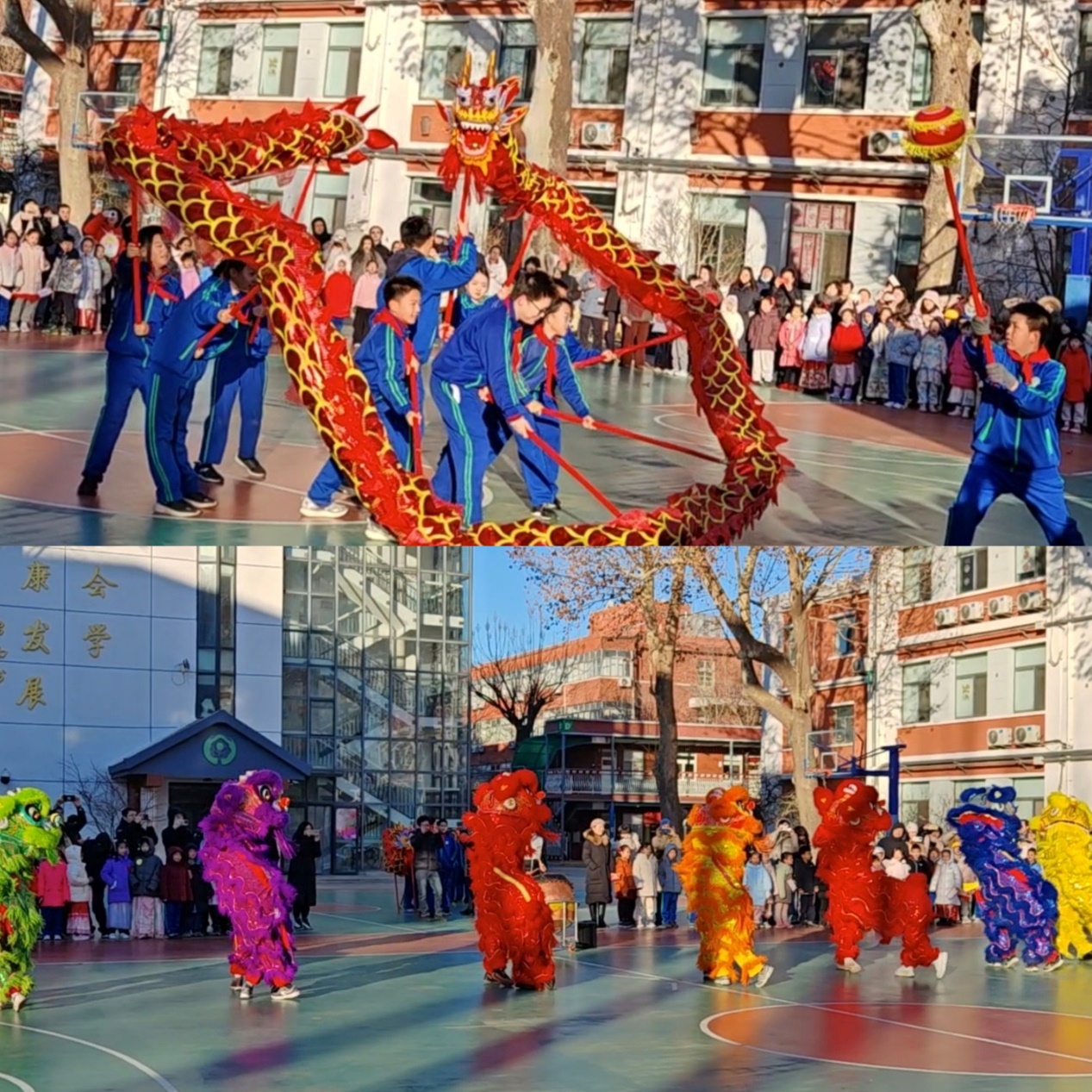 操场上更是热闹非凡,浓郁的节日氛围扑面而来。学校舞龙舞狮社团的表演威风凛凛,灵动的龙狮随着鼓点腾跃穿梭,时而昂首摆尾,时而盘旋嬉戏,瞬间点燃全场热情;憨态可掬的“美猴王”惊喜现身,金箍棒耍得虎虎生威,还不时与孩子们交流互动,将现场欢乐氛围推向高潮。吴校长在活动中致辞,向顺利度过入学百天的一年级同学们致以热烈祝贺,向全体师生及家长送上诚挚的新年祝福与感谢。吴校长特别提及,三年级组为同学们精心手绘了新年台历,这份满含心意的礼物不仅传递着学长学姐的真挚情谊,更承载着校园温情的传承,希望同学们在未来的成长道路上,能将这份温暖与关爱不断延续。