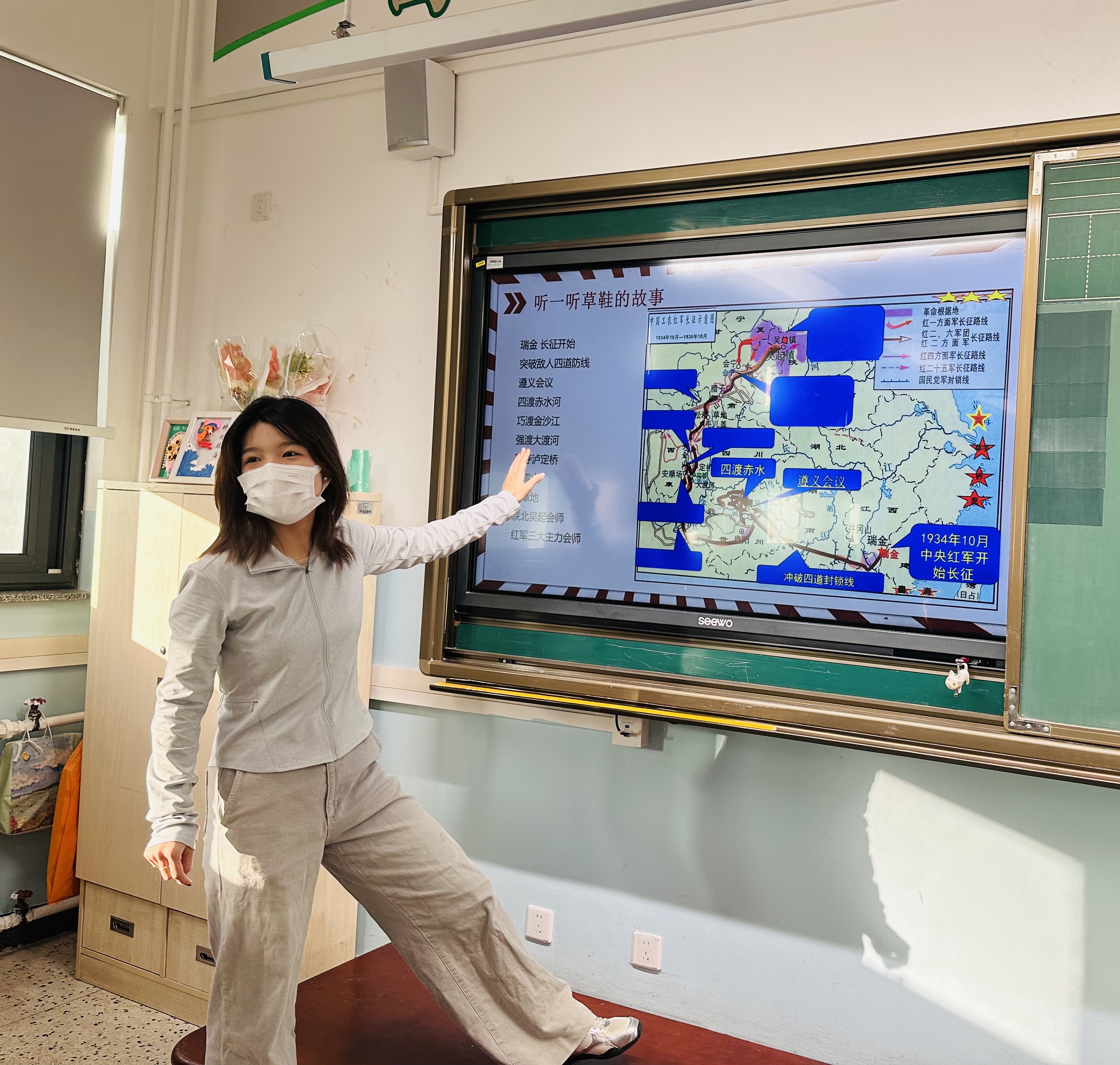 在互动讨论中,孩子们围绕 “为何明知有危险仍不退缩”“个人与国家的关系” 等问题各抒己见,逐渐明晰 “有国才有家”“个人命运与国家命运紧密相连” 的深刻内涵。当倪老师提出 “为何简陋草鞋能进纪念馆,而如今昂贵的日常鞋子最终归为垃圾桶” 时,学生们恍然大悟:日常鞋子的价值止于个人使用,而这双草鞋承载着革命先烈保家卫国的初心,是长征精神的象征,更是一段历史的见证。