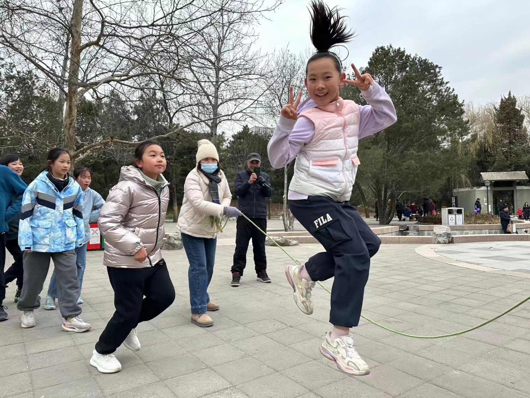 在田老师的周密安排下,热心家长们还组织同学们每周日上午在公园的空地上练习集体长绳项目,从100个到150个、200个,单8、双8集体长绳取得了肉眼可见的进步。体育郭老师也充分利用体育课时间对同学们进行悉心指导,带领同学们提高跳绳技巧。