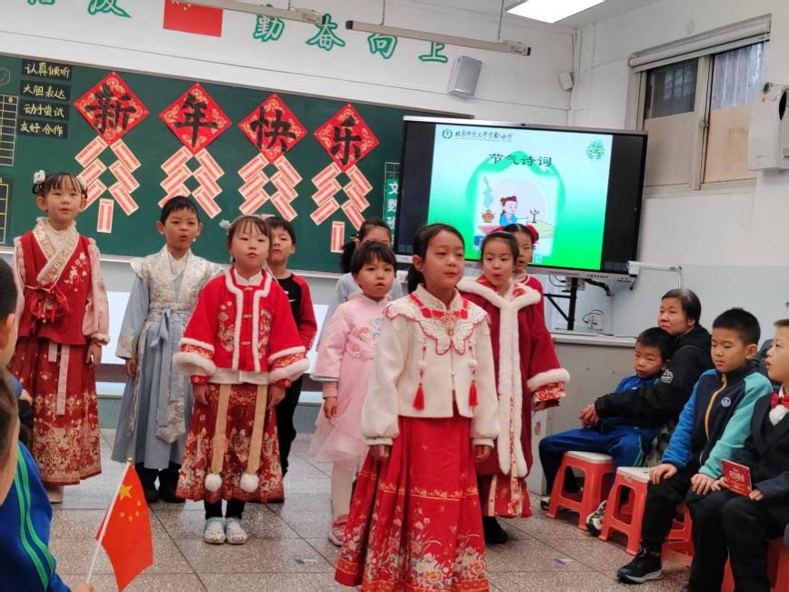 2025年12月31日上午,北京师范大学实验小学一年级(4)班全体师生与家长齐聚校园,共同参加了“萌童百日初成长·古韵游园乐传承”百日庆典暨元旦联欢活动。对于一(4)班而言,这不仅是一场节日联欢,更是一份属于孩子、老师与家庭共同珍藏的成长记忆。