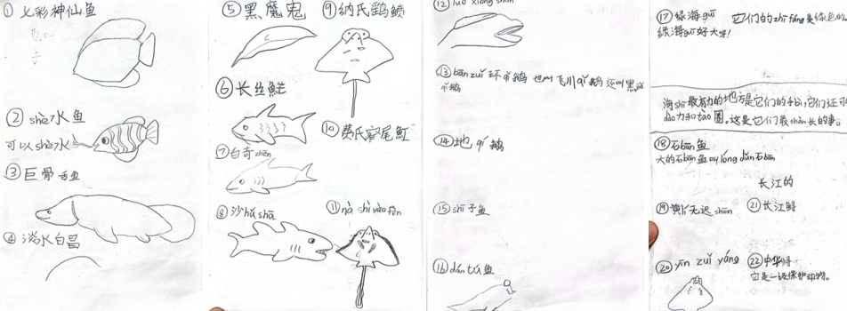 张瑞澄:我觉得这一次的学习特别成功,因为我学到了很多知识。我了解到了亚马逊丛林里的鱼类,它们都非常奇妙,让我感受到了大自然的神奇。我还认识了海洋里的许多鱼类,有些体型很大,却很灵活,都是大自然创作的作品,十分有趣。我还学到了保护环境的重要性,比如中华鲟在70年代还有一万多只,但现在已经变得很少。这是因为人类的行为伤害了它们。中华鲟洄游到长江繁殖后代时,会被渔船的螺旋桨划伤。一些中华鲟成功孵化出幼鱼,但鱼宝宝可能天生带有伤残,令人心疼。