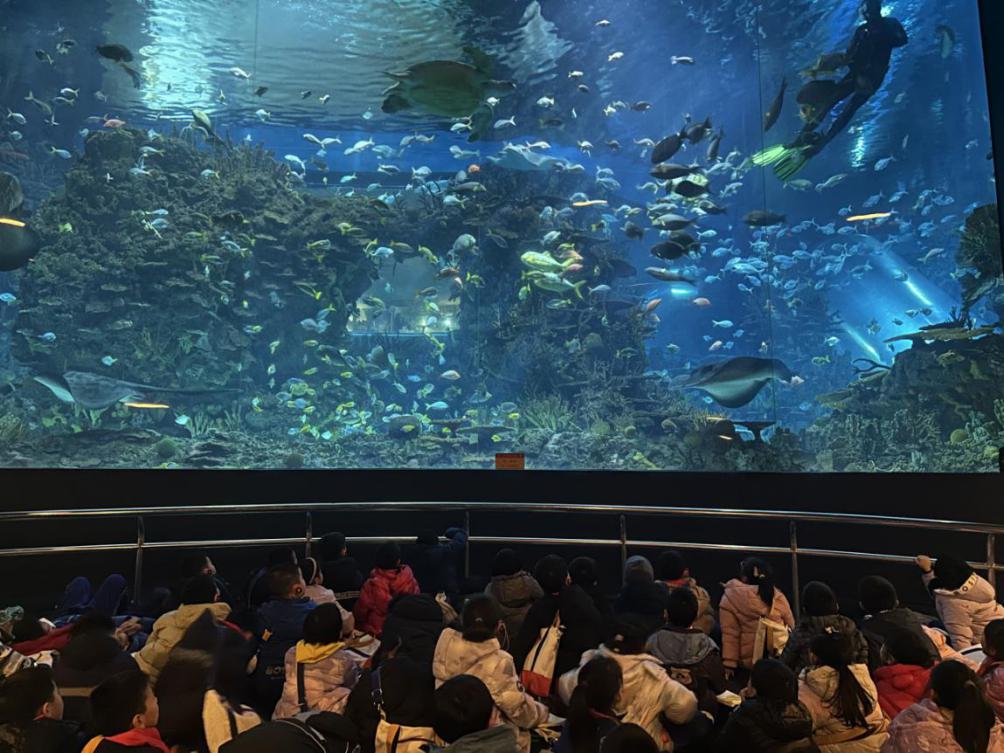 12月3日,北京师范大学实验小学二(2)中队前往北京海洋馆,参加北太平庄学区少工委组织开展的“思政领航·潜行海底两万里”主题教育活动。在讲解员老师的指引下,同学们充分领略了海洋世界之美,了解到海洋生物保护知识,对保护大自然生态平衡有了更加深入全面地认识。