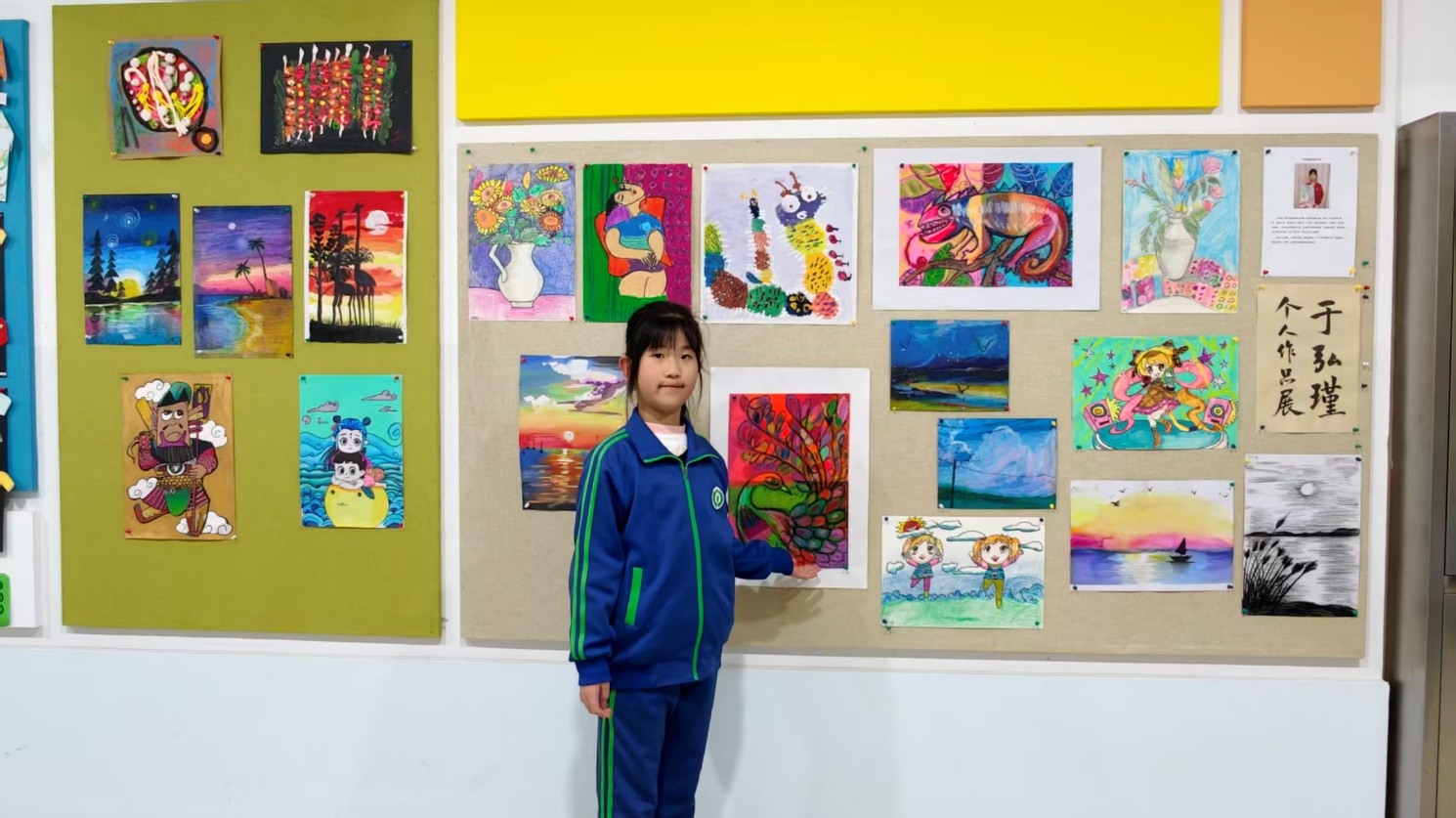 大家好!我是爱画画的于弘瑾,来自四年级6班。我从5岁开始学习画画,在我心中,画画是另一种语言。开心时,颜色是跳跃的;安静时,线条是温柔的。 画画是我的超级力量,它能把我看到的美好,想到的故事,感受到的快乐都变成画面。每一笔色彩,都是我的心在跳舞。