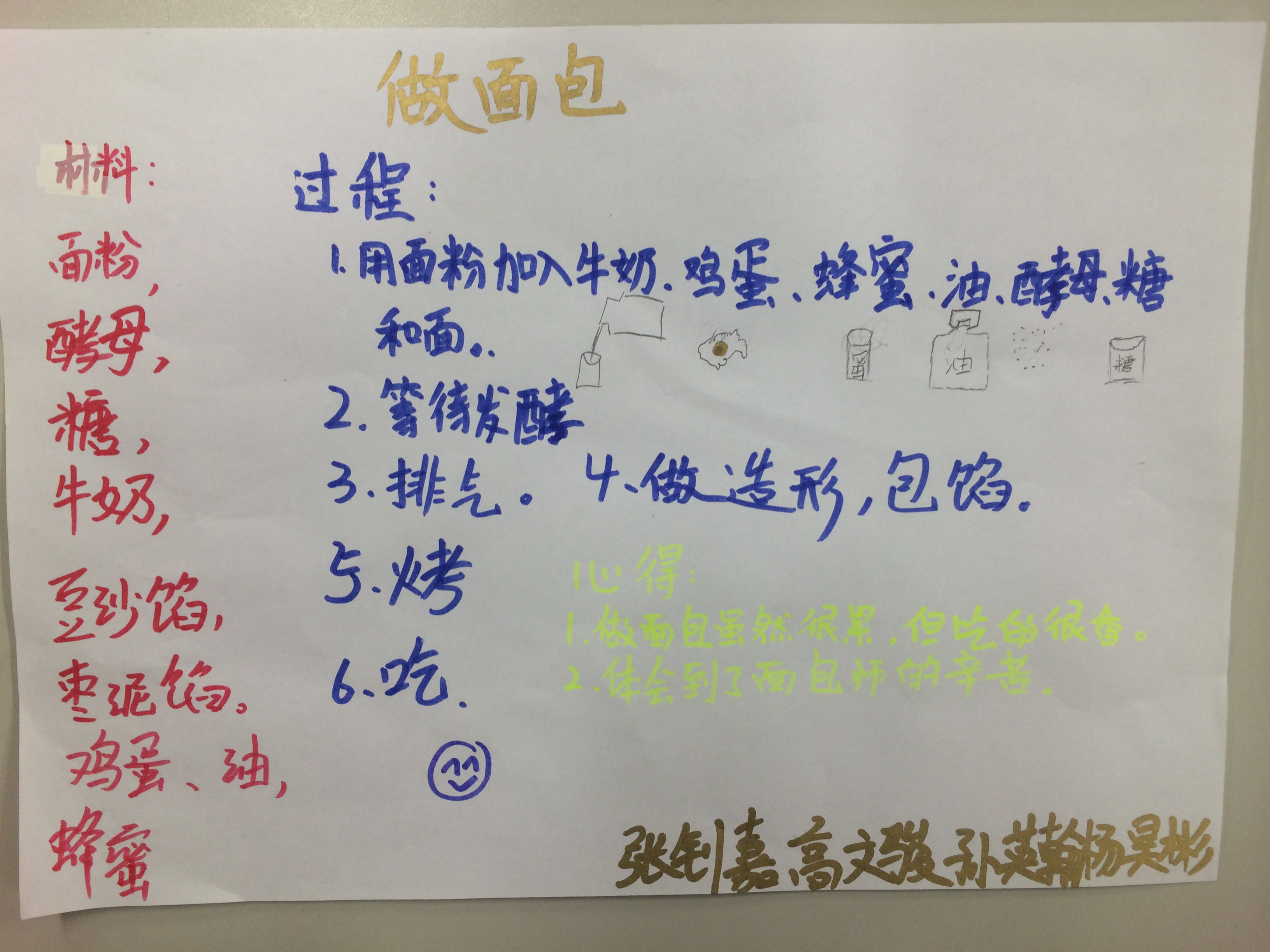 六年级孩子们在烤面包、蛋糕的综合实践活动之后,纷纷用自己的方式记录下收获。