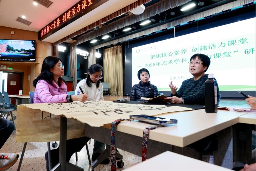 两节课后,音美组全体教师围绕“核心素养下的艺术课堂活力构建”,“学科融合的实践路径”等主题展开热烈研讨。老师们结合课堂观察,分享了对两堂研讨课的见解,就教学目标达成、教学环节设计、学生参与度等方面交流经验、提出优化建议,碰撞出丰富的教学思维火花。