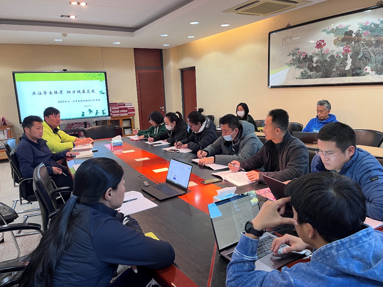 为进一步推动北京市体育过程性考核工作在我校顺利实施,提高学生的健康水平,11月17日下午,我校召开了 2023 年体质测试工作总结会。副校长孙彬,三至六年级组长以及全体体育老师参加了此次会议。