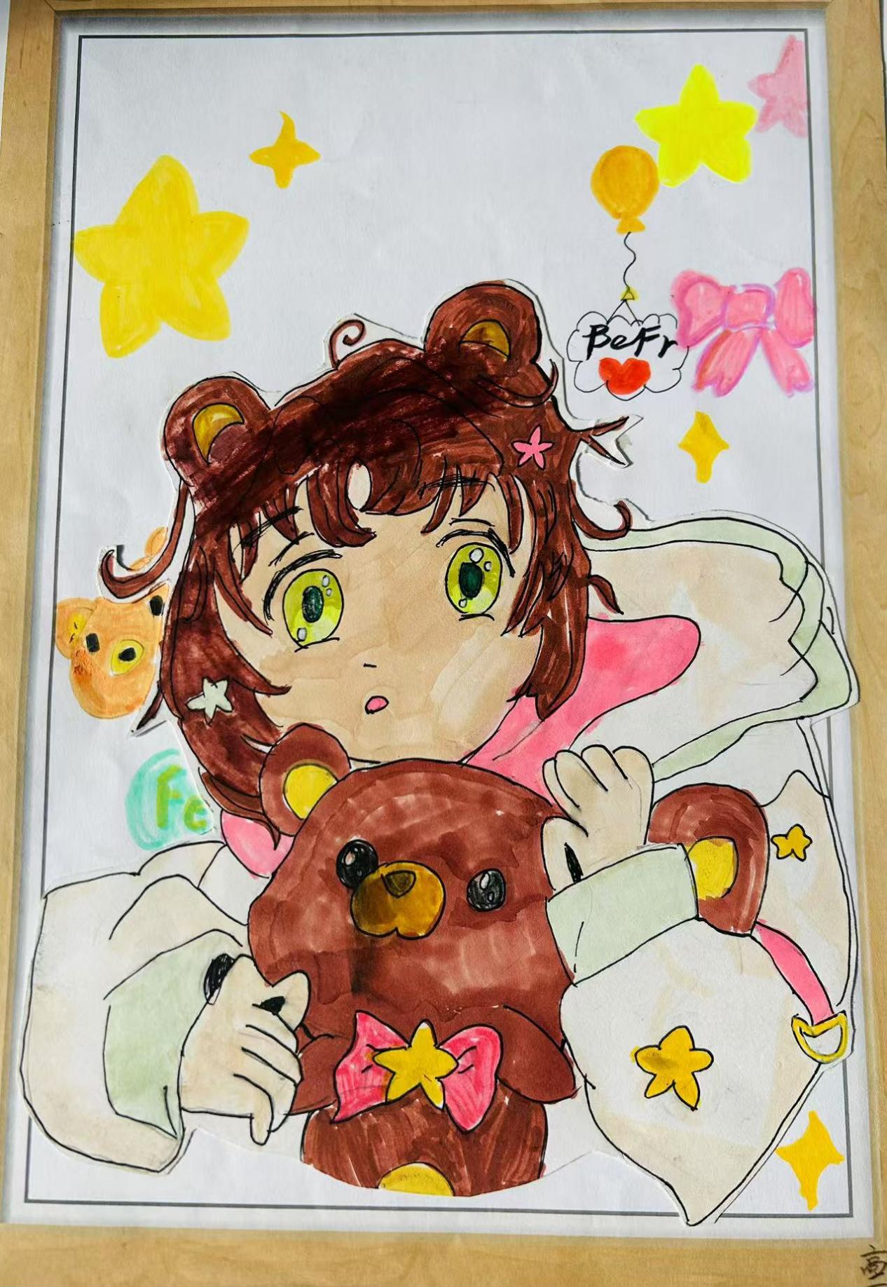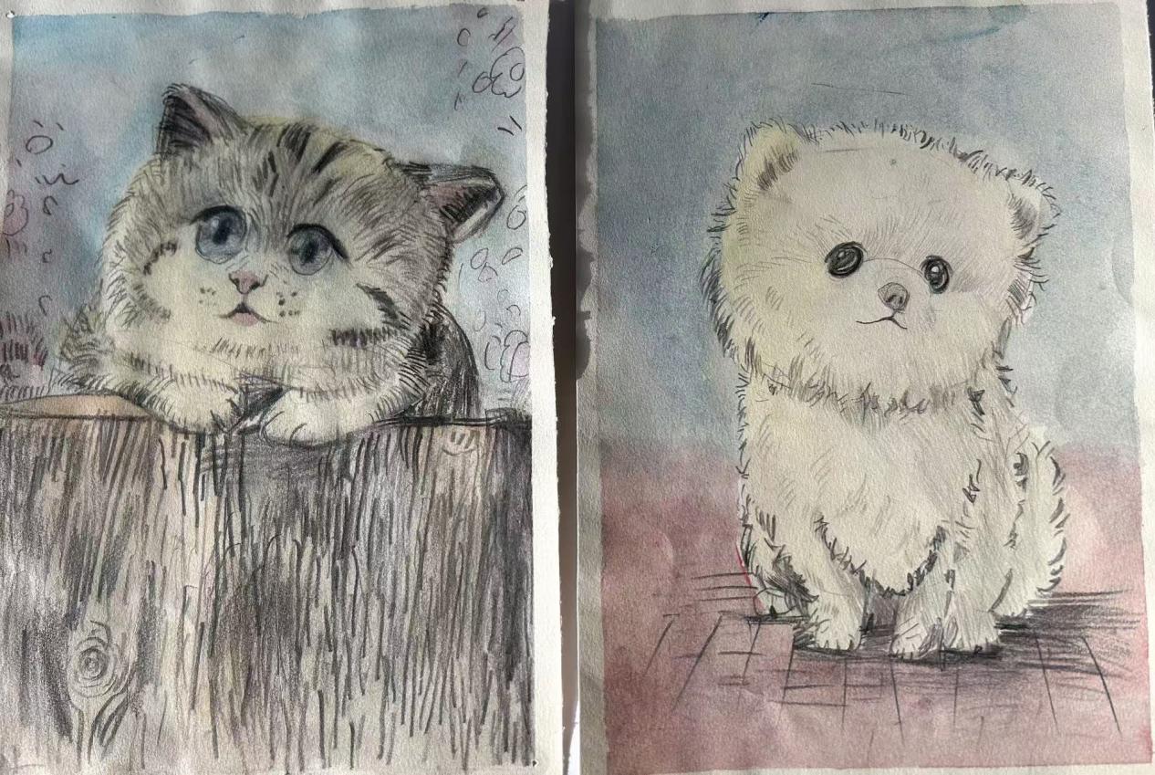 校园里的晨光晚霞、放学路上蹦跳的小猫、还有我脑海里那些藏着奇遇的幻想天地,都被我一笔一划地定格在了画纸上。每一幅作品里,都藏着一段专属于我的小故事。