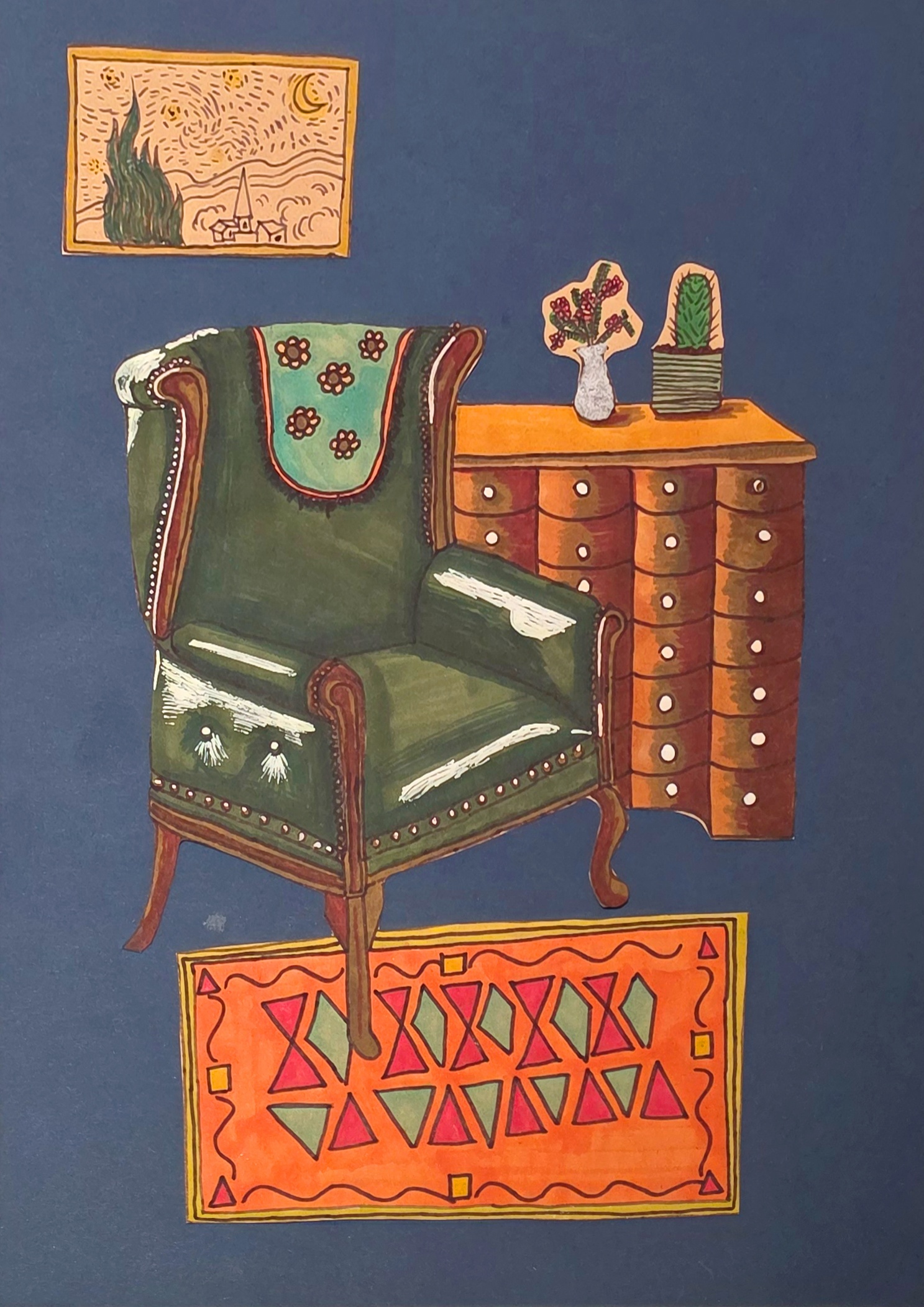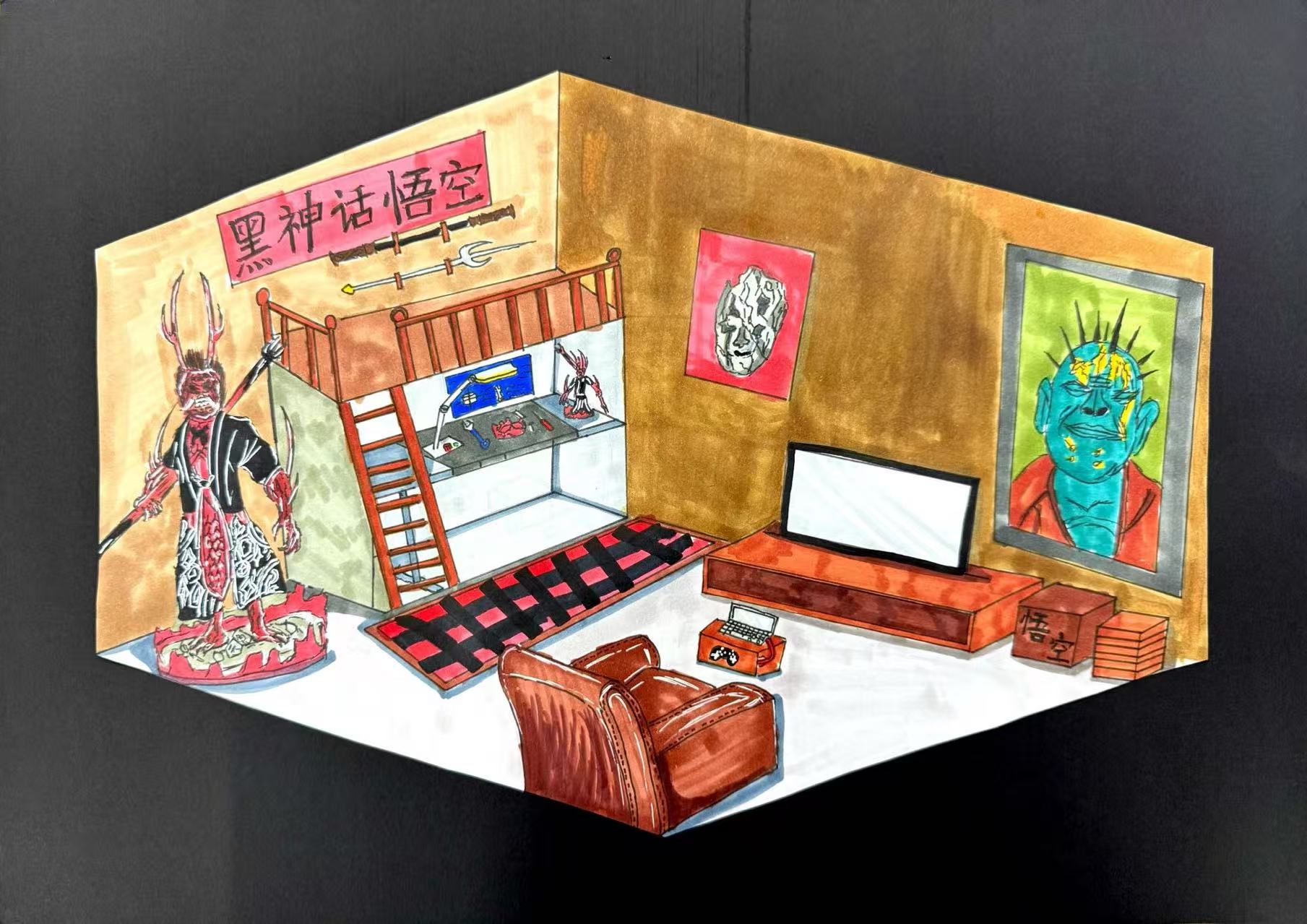 小时候我就喜欢画画,最开始只会画几笔简单的线条,后来学着给喜欢的图画涂色,到现在,我会把生活里的所见所想都画进作品里。画画这件事,总能让我感到很开心。我画过动画片里的角色,画过游戏里的人物,也把自己想象的故事画成画。