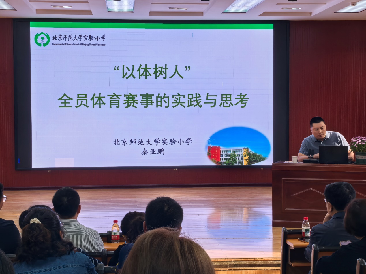 9月16日,交流活动进入深度研讨阶段。北师大实小体育教研组长秦亚鹏以《“以体树人”全员体育赛事的实践与思考》为题,在第四小学阶梯教室作专题讲座。他系统介绍了北师大实小坚持了25年的“童友杯”足球赛,及其他全员体育赛事,结合学生体质健康监测数据,直观展现了常态化体育活动对学生身体素质、团队协作能力的显著提升作用。“让每个孩子都能在运动中找到热爱,是我们推进全员体育的初心。”秦老师的分享引发在场教师对“体育育人价值”的深刻思考。