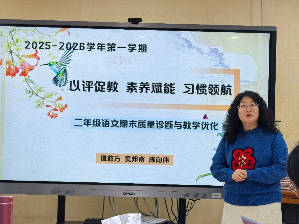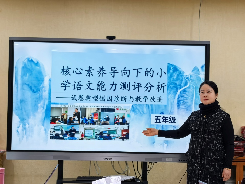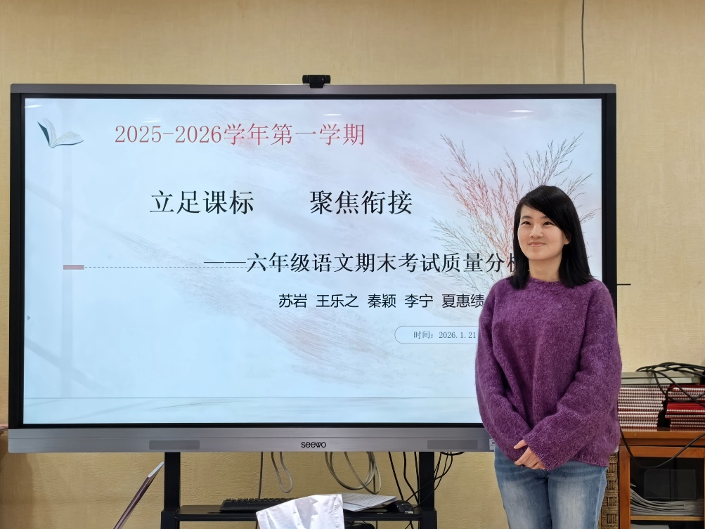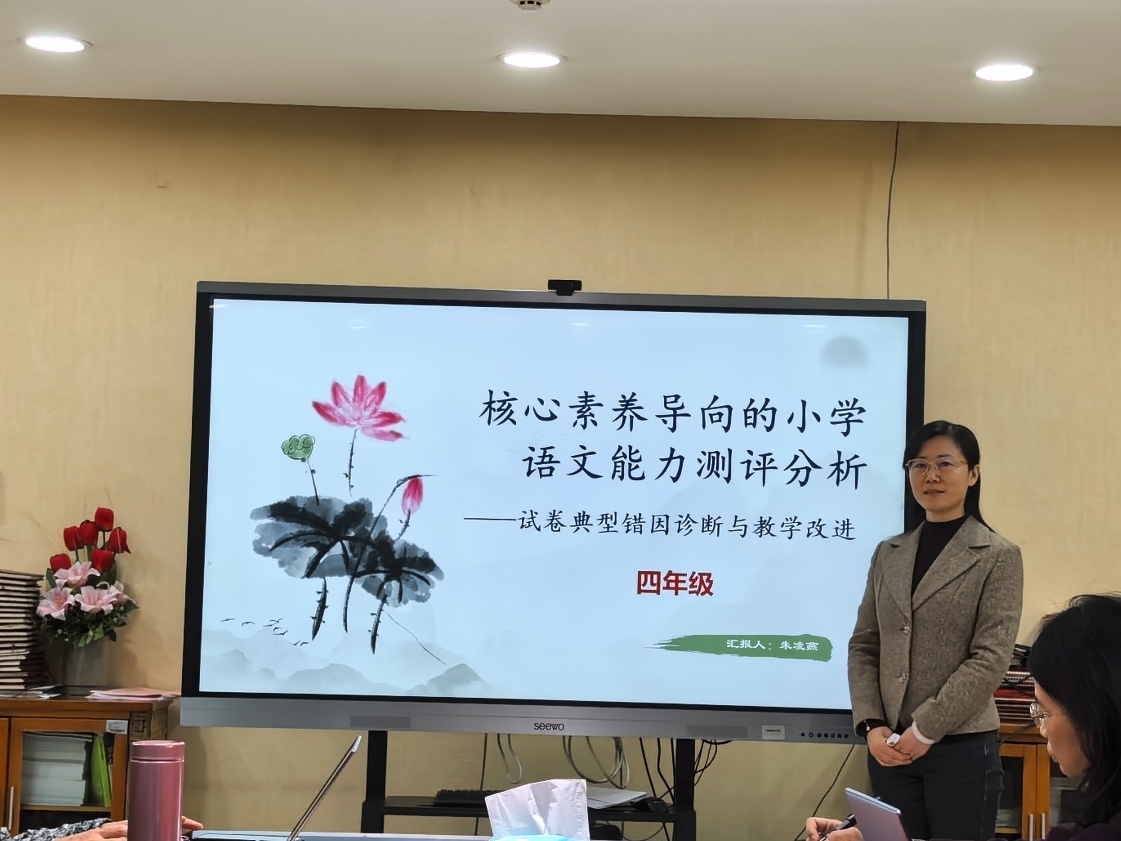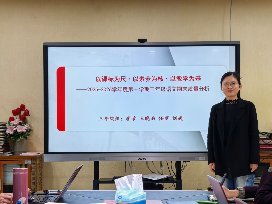 2026年1月21日,我校召开语文学科教学质量分析会,会议由语文教学主任、特级教师贾红斌老师主持,李荔萍书记及全体语文教师参加了会议。本次工作会围绕着“深耕细研促成长 衔接赋能育素养”而展开,深入分析了以核心素养为导向的小学语文能力测评,全面梳理提炼出共性问题与薄弱环节,同时明确了后续教学的优化方向与攻坚重点。