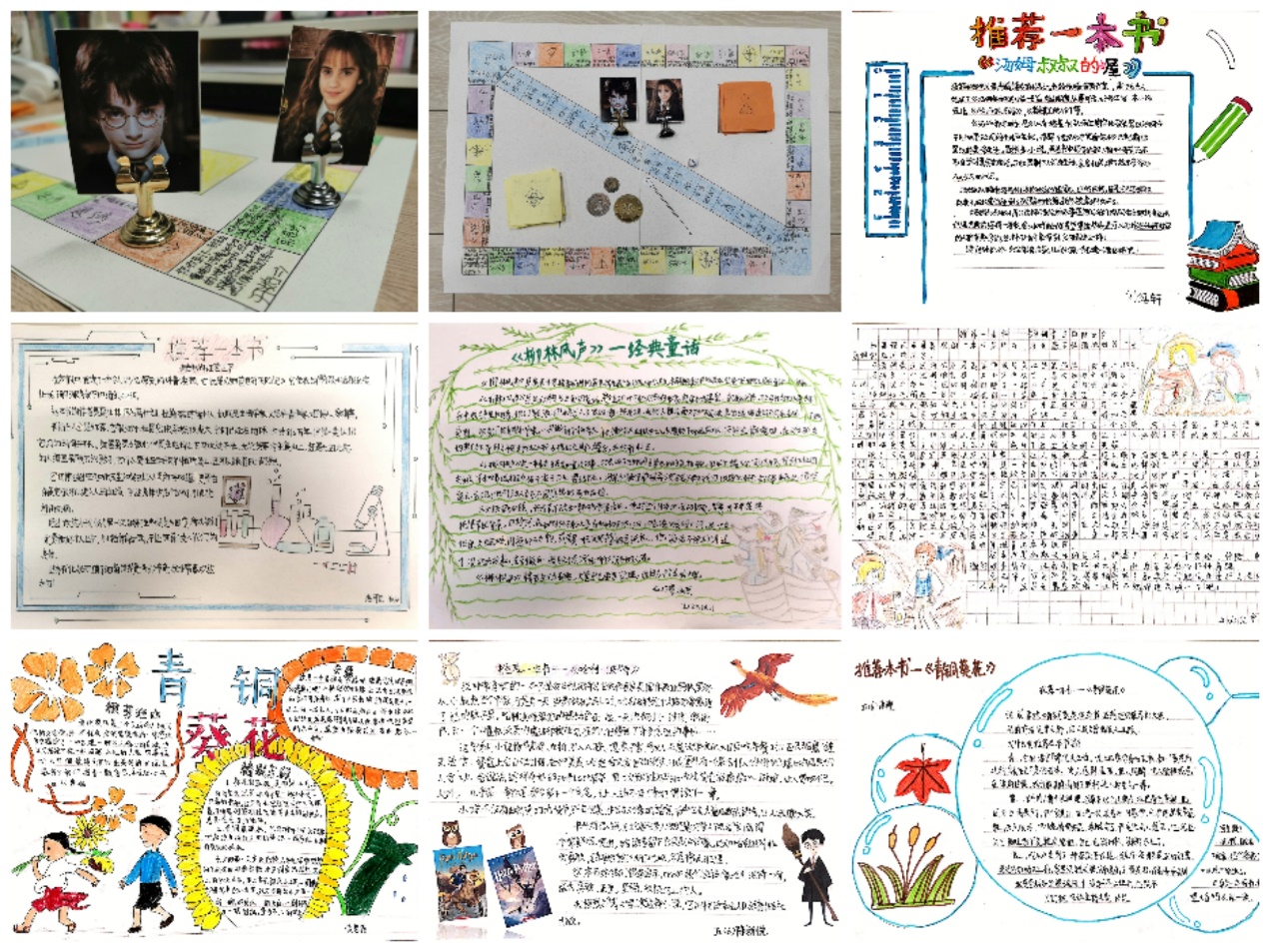 在此次活动中,学生的创造力被充分激发出来。有的学生制作了手抄报,推荐自己喜欢的书;有的学生结合泥塑和衍纸艺术,制作了创意书签;还有的学生结合小说情节,制作了闯关棋……