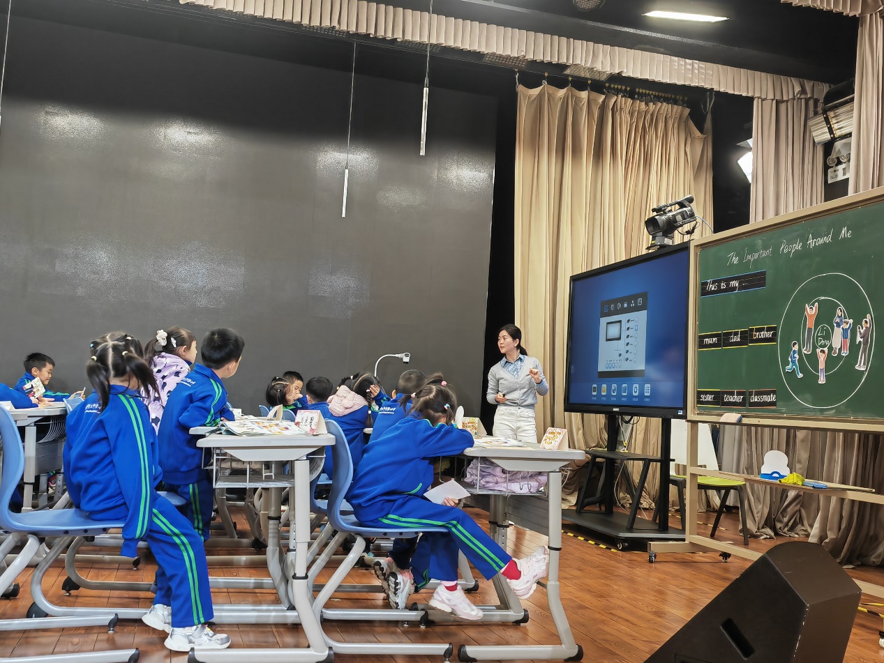 活动展示了两节各具特色的研究课。倪根培老师执教的一年级课程Unit 5 People around me Lesson 1,巧妙创设了“班级照片展”的真实情境。孩子们在介绍家人与朋友的温馨氛围中,自然而然地习得并运用语言。课堂在简短的基础性复习后,开展了丰富的游戏活动与即兴对话,充分激发了初学者的表达欲望,展现了低段英语教学的趣味性与感染力。