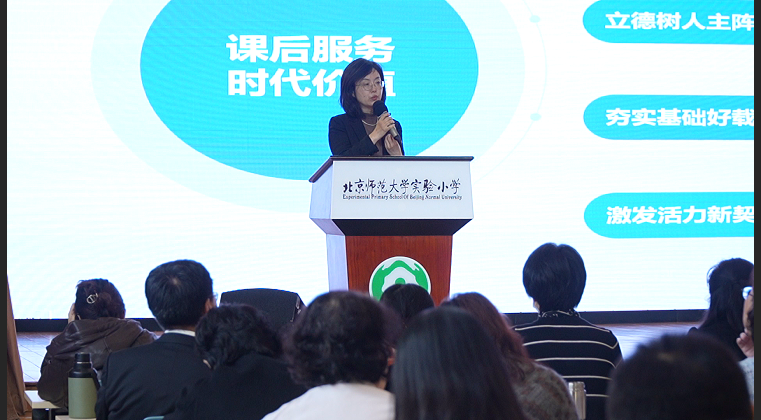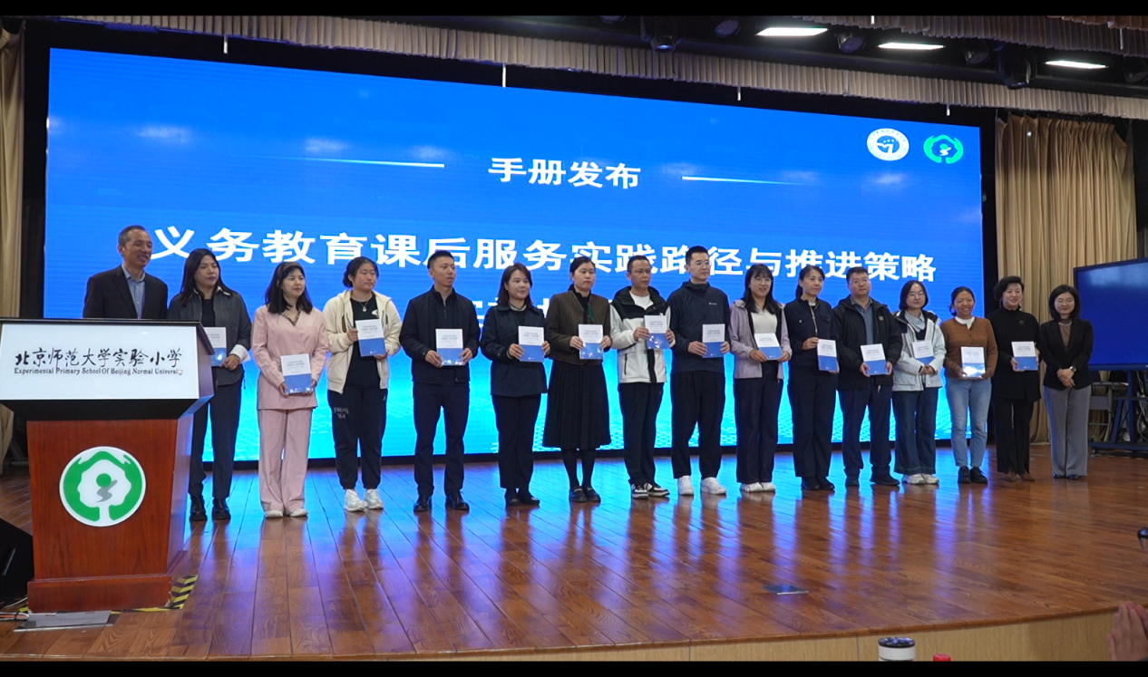 2025年10月10日,北京市课后服务工作推进会暨义务教育课后服务指导手册发布会在北京师范大学实验小学隆重召开。本次会议主要通过政策解读、经验分享、手册发布、案例交流等形式,为全市课后服务工作高质量发展凝聚共识、指明方向,旨在推动全市教育系统进一步提高政治站位,从为党育人、为国育才的高度,深刻认识课后服务的战略意义。北京教育科学研究院基础教育科学研究所所长李卫东,北京教育科学研究院基础教育科学研究所副所长蔡歆、义务教育研究室艾乔珍主任,海淀区教育科学院科研员王宇航出席会议,各区教委负责课后服务工作的领导和干部,共话课后服务创新实践。我校校长吴建民、党总支书记李荔萍及课后服务管理团队参加发布会。