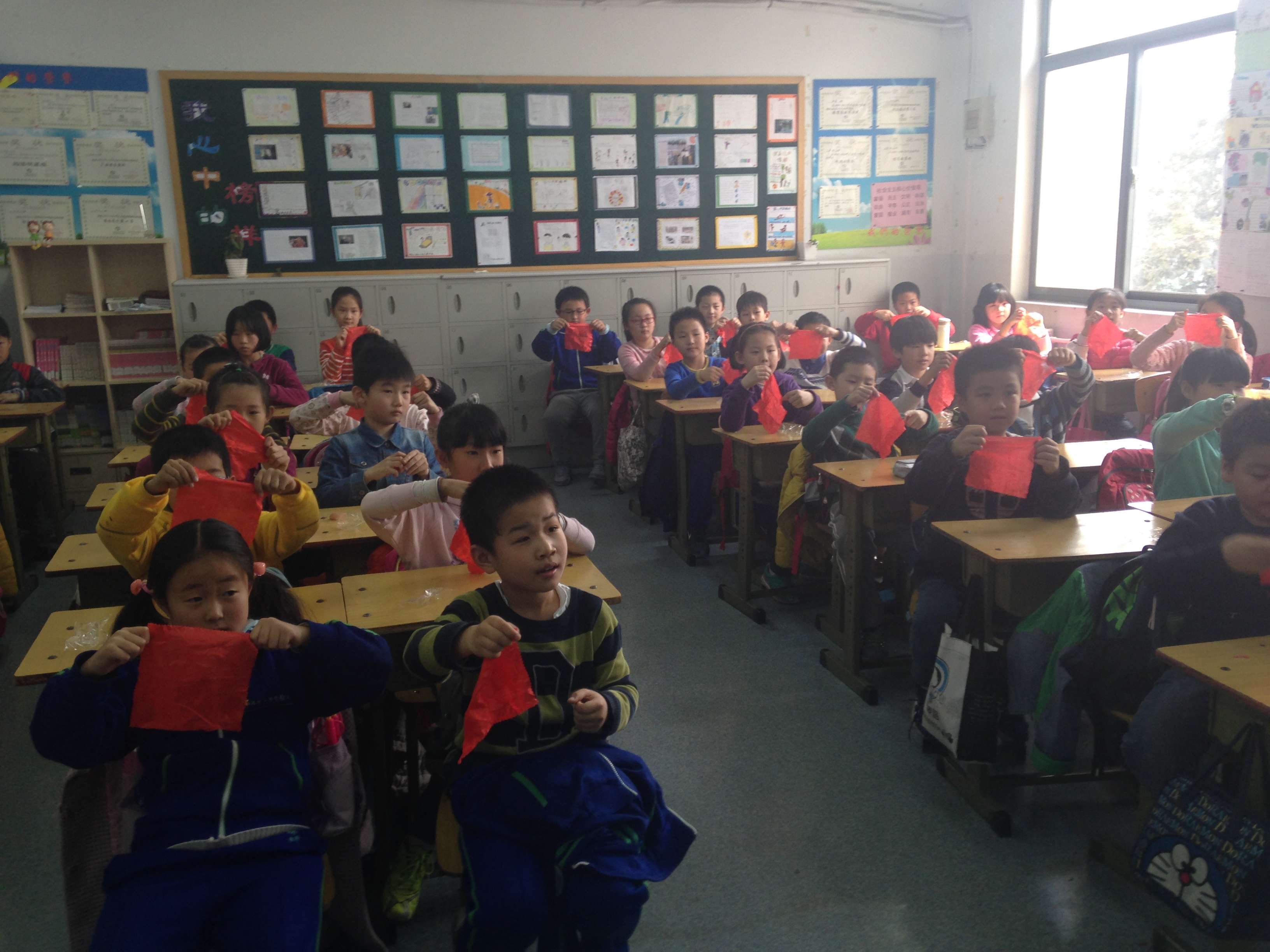 这是我们第一次活动。付世杰首先为我们演示了一个魔术——“神奇的手绢” 。只见两手空空的他,轻轻一吹气,奇迹便出现了——一块红色的手绢出现在手中,再吹一口气,手绢又消失得没有踪影!这令老师和同学们惊叹不已。接着,付世杰为我们展示了魔术的玄机。我们跟着学得津津有味。不少同学已经能在全班同学面前做展示了。