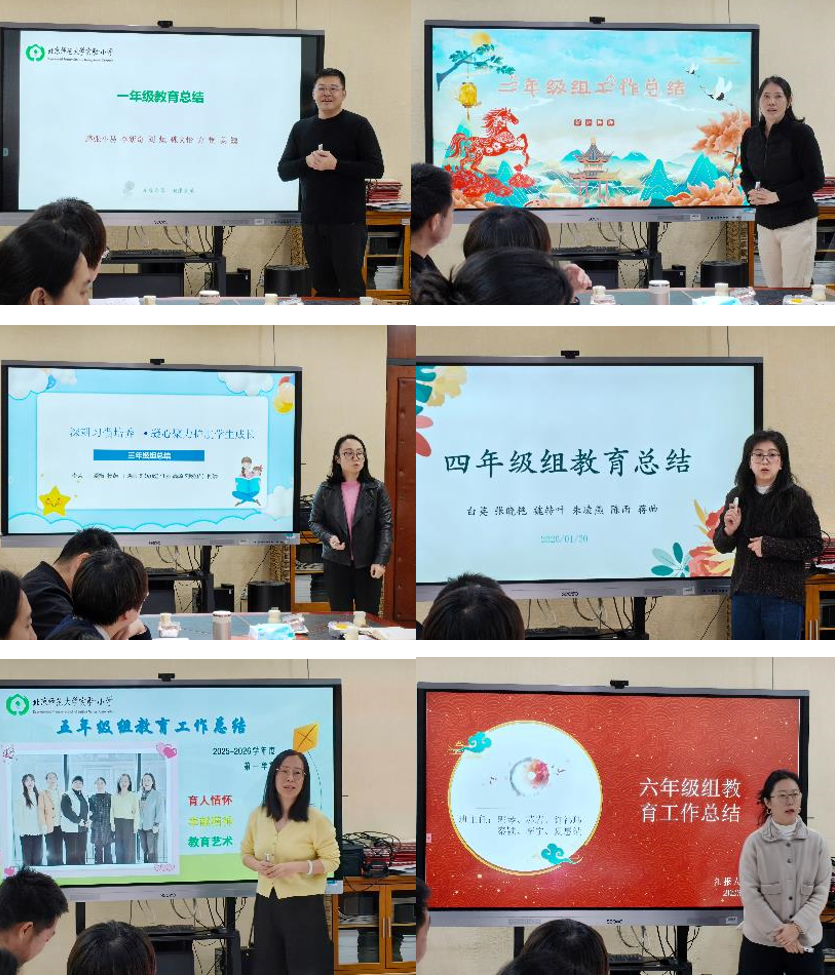 会上,六位年级组长依次登台,作本学期年级教育工作汇报。一年级组面对新生,以“统一要求、团队互助”为基石,确保了教育教学秩序的平稳过渡。二年级组扎实开展行为规范与少先队教育,在个别生关爱上倾注了耐心与智慧。三年级组聚焦习惯养成,以“二十四节气”为主题开展系列活动,展现了团队的创新力。四年级组将民族共同体教育、红色研学、大学资源深度融合,有效拓展了育人边界。五年级组以“为英雄塑像”系列主题活动为主线,通过沉浸式研学厚植学生的家国情怀。六年级组则立足毕业年级特点,精心设计“志愿服务”与“感恩母校”系列活动,着力培养学生的社会责任感和衔接适应力。各年级的汇报内容充实、特色鲜明,充分体现了班主任队伍扎实的日常工作和深厚的育人情怀。