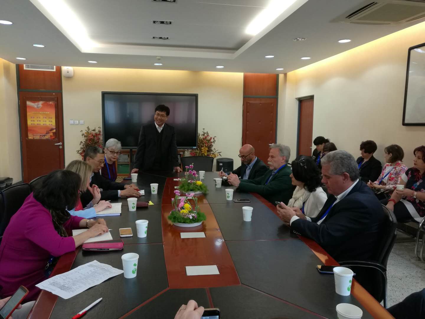 2018年4月17日上午,意大利威尼托教育官员交流访华团来我校参观交流。交流团成员有威尼托大区教育厅副厅长多娜·劳拉,中意国际学校李雪梅校长、王福生副校长,意大利马可·福斯卡里尼寄宿学校、安吉利学校、圣本笃学校、蒙特贝卢纳综合学校、比萨尼综合学校、威尼斯市巴尔巴里戈学校、梅斯特雷市布鲁诺弗朗凯蒂学院、爱纳乌迪-斯卡尔巴学校、爱纳乌迪学校、福索综合学校的10位校长以及科斯特莱综合学校、奎罗综合学校(瓦斯市)、特代维戈综合学校、马尔科尼高中、马尔凯西学校的5位教师。我校吴建民校长、贾红斌主任接待了意大利威尼托教育官员交流访华团。