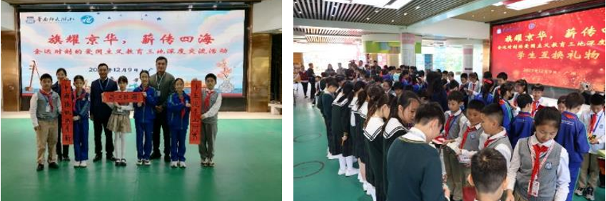 之后,大家齐聚华师大附小腾飞楼,通过领导致辞、节目表演、互赠礼物环节,进一步拉近了三地师生的距离。