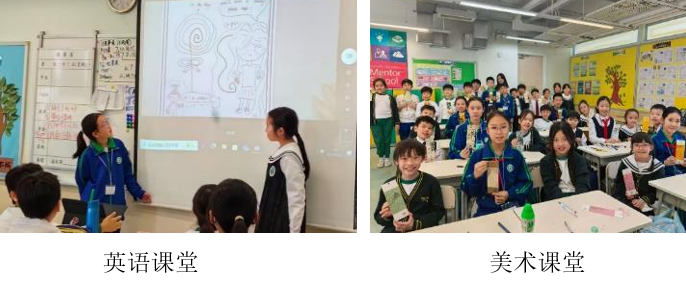欢迎仪式后,在香港学校师生的引导下,我校团队参观了校园。通过手拉手小伙伴的引导,大家更深入地了解港方校园的布局、设施、活动以及学校的文化、历史和传统。随后同学们分成两组体验了港教大赛小的英语课堂和美术课堂。英语课上,老师从绘本入手,在回顾已知词根、介绍了-ish词根后,带领学生猜测该词根的含义,然后与美术结合,请学生以绘画形式表达对这一类词语的理解。在接下来的美术课上,同学们认识了头脑瑜伽—禅绕画,并用这一形式制作了书签。无论是英语绘本,还是美术课堂的学习,我校同学都认真学习,积极参与。